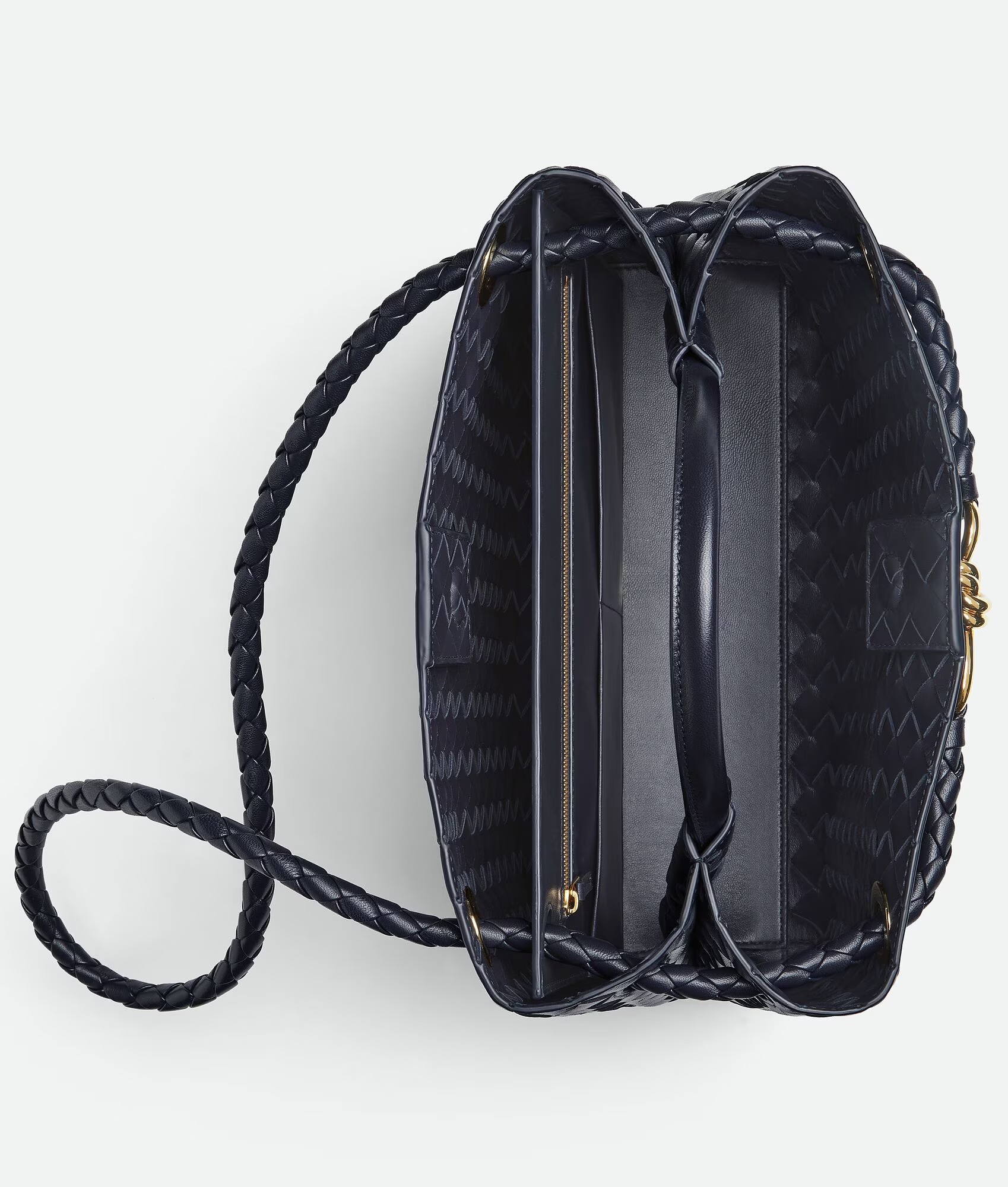 Bolso de mano en piel Intrecciato con detalle de nudo característico y correa cruzada deslizante.
