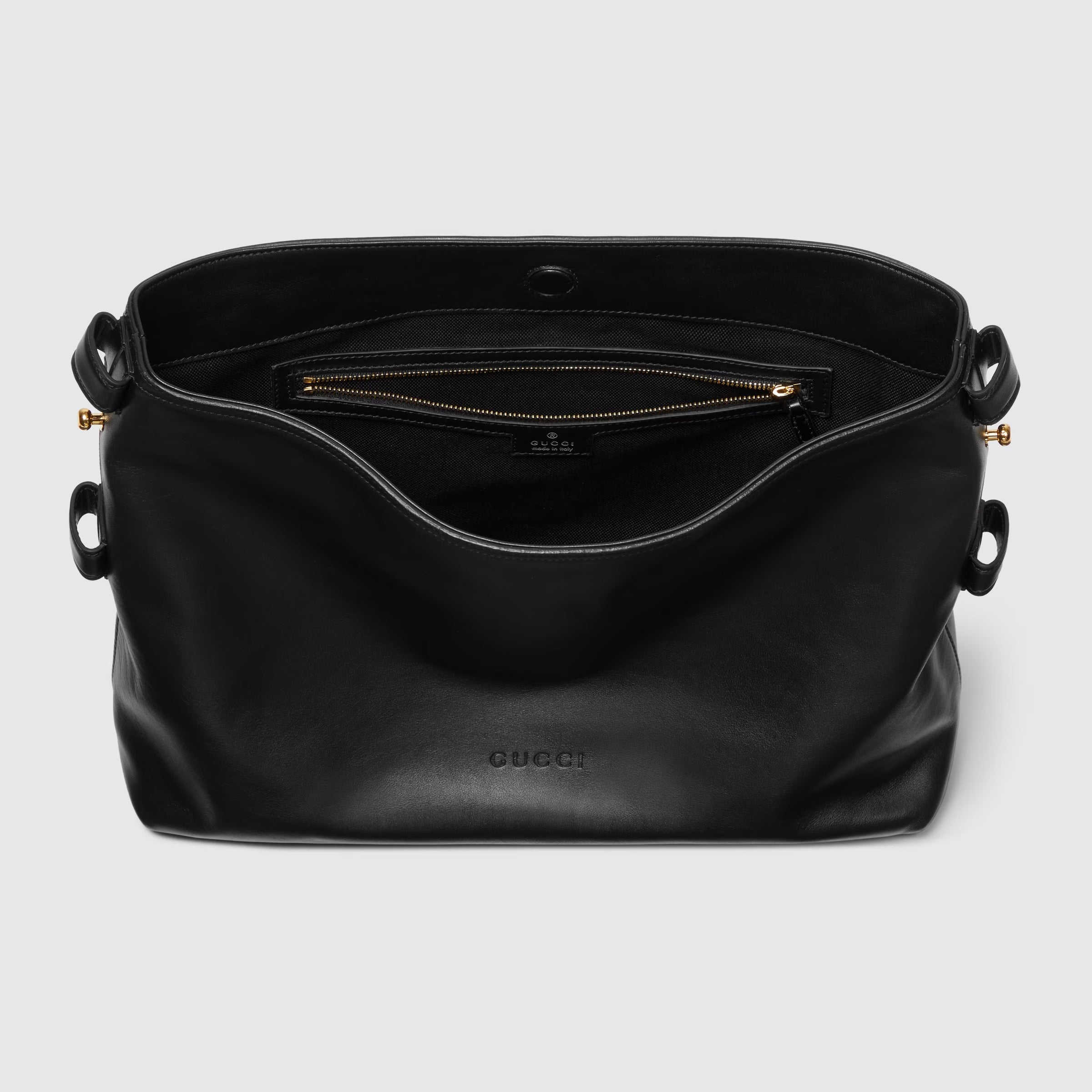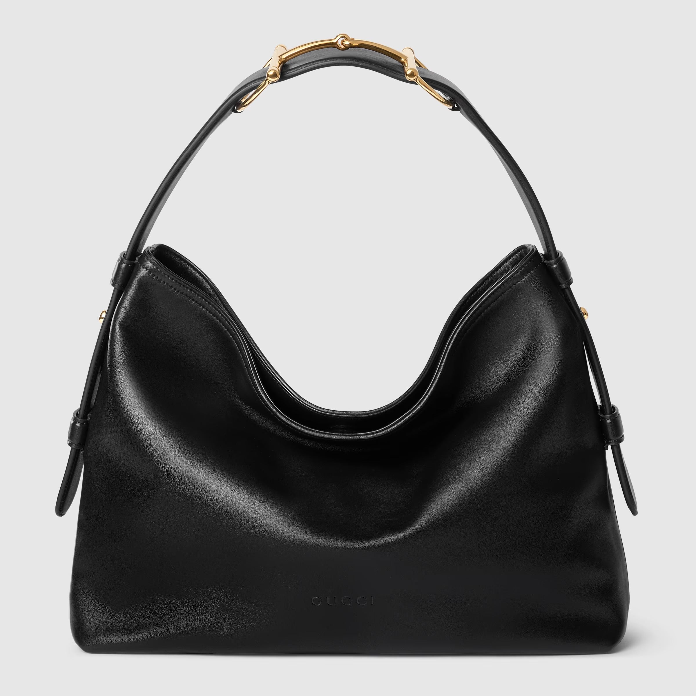 - Horsebit detail on the shoulder strap