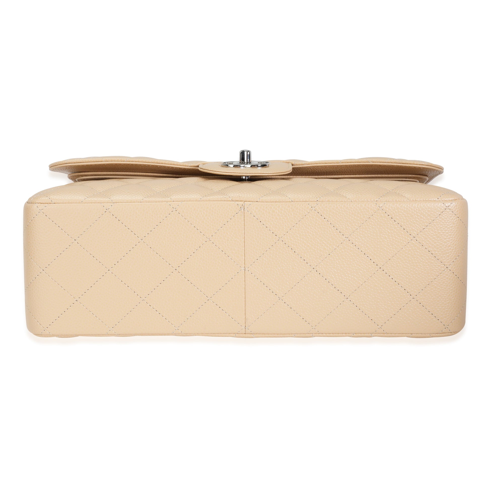 Bolso de mano clásico jumbo de doble solapa, acolchado color beige con textura de caviar