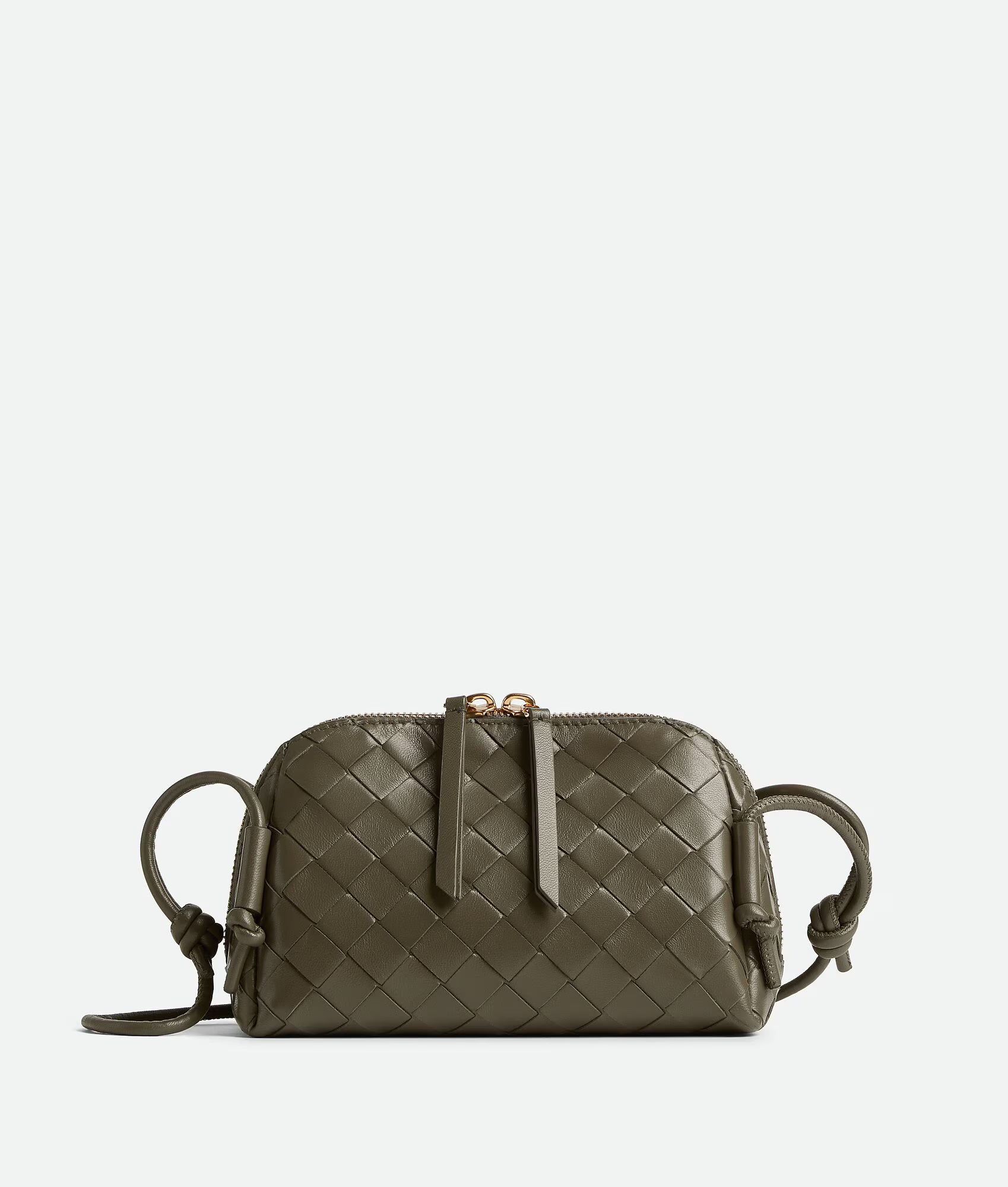 Bolsa de piel napa Intrecciato con correa tubular ajustable con detalles de nudo corredizo.
