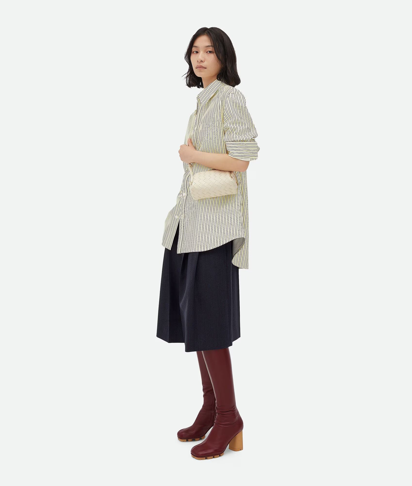 Bolsa de piel napa intrecciato con correa tubular ajustable.