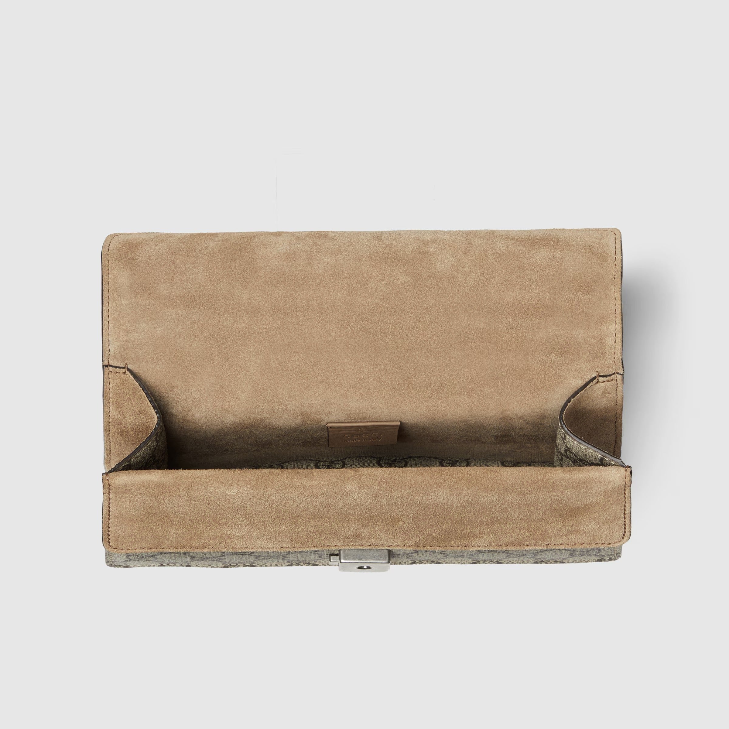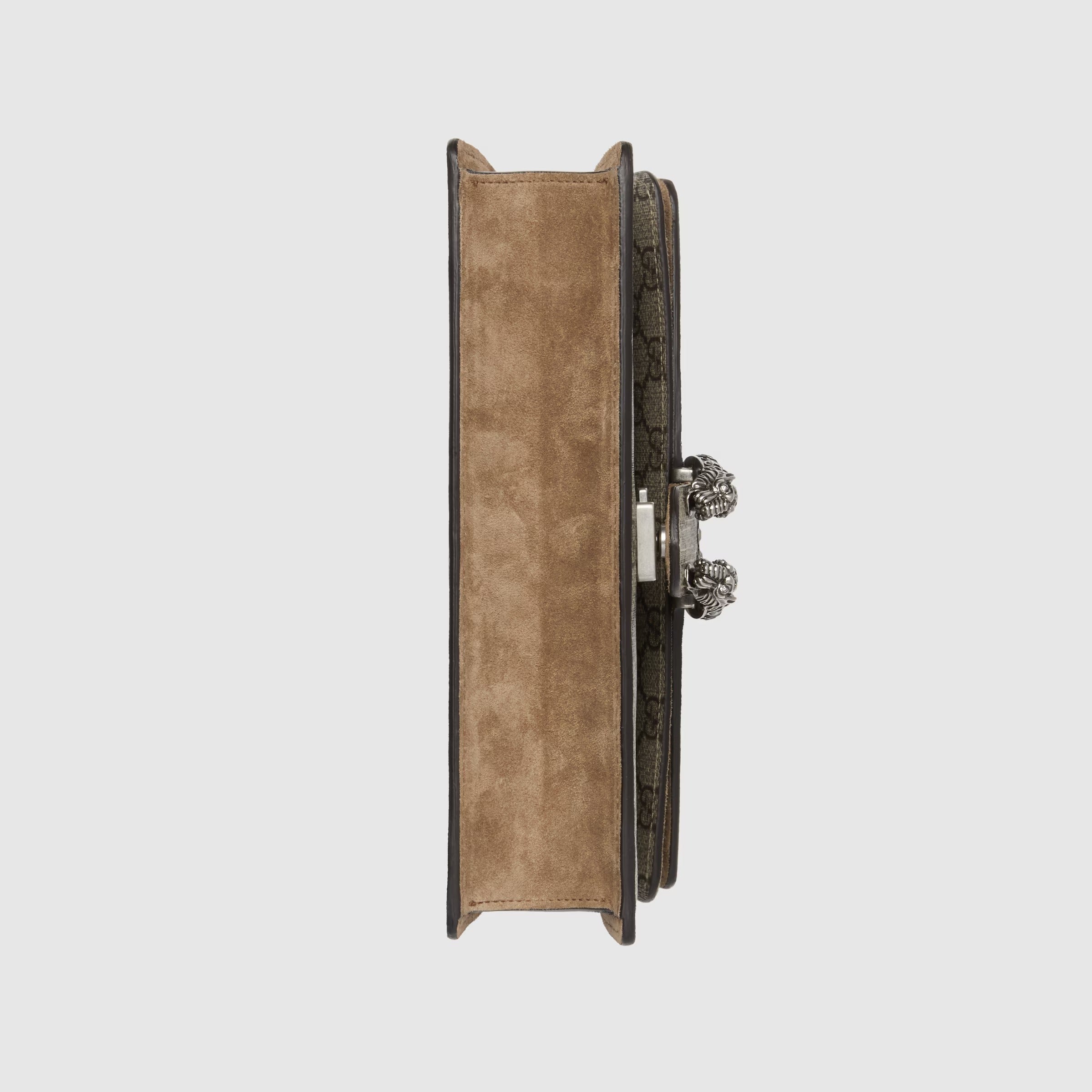 The shape is defined by the defining tiger head closure—a unique detail referencing the Greek god Dionysus, who in myth is said to have crossed the river Tigris on a tiger sent to him by Zeus—further enhanced with sparkling crystals. The sliding chain strap can be worn multiple ways, changing between a shoulder, cross-body and a top handle bag.