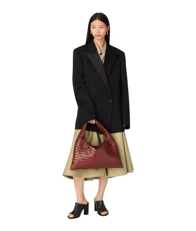 Bolso de hombro con confección Intrecciato en piel de becerro.