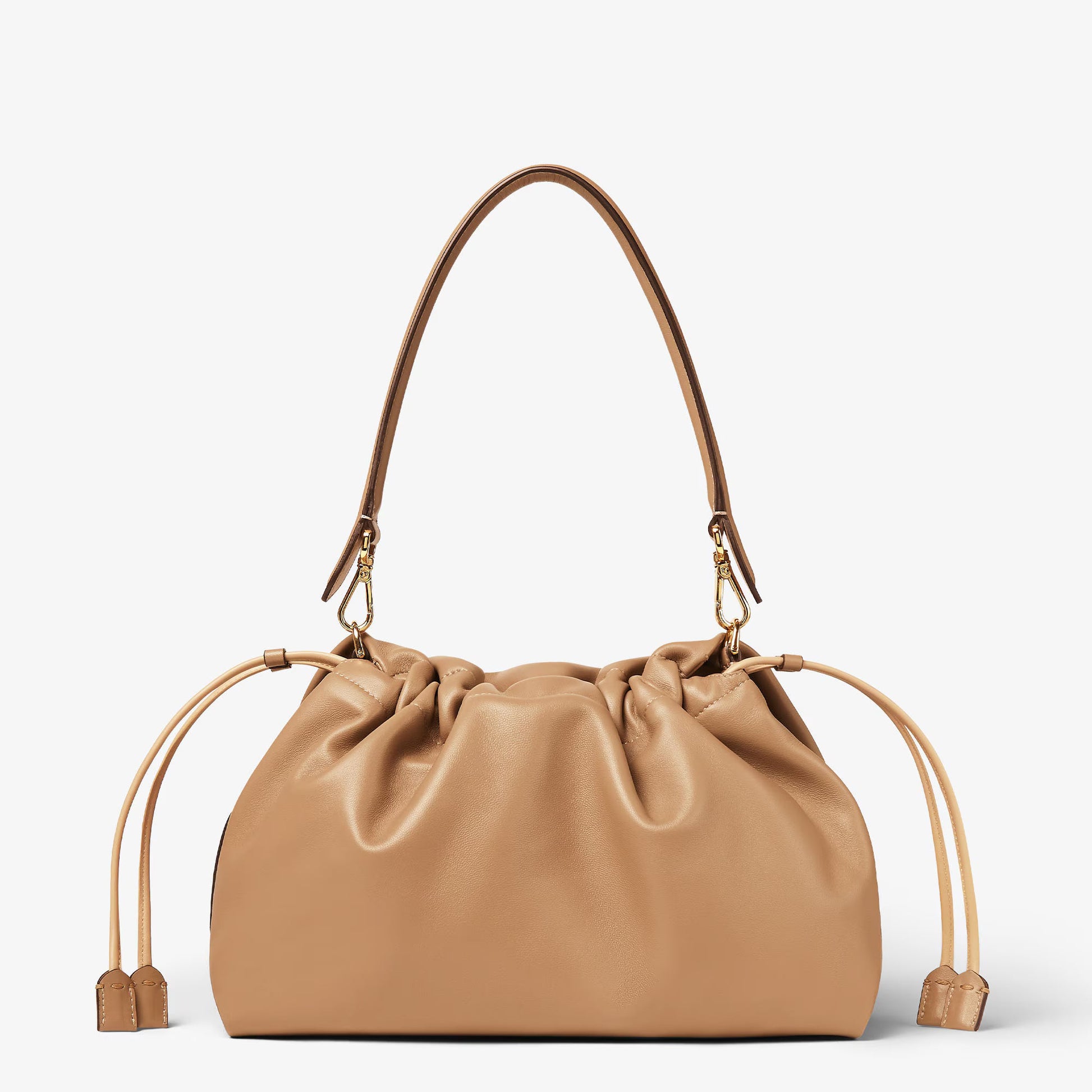 Confeccionada en suave piel napa color capuchino, se completa con un cierre FF con inserción de piel tono sobre tono.