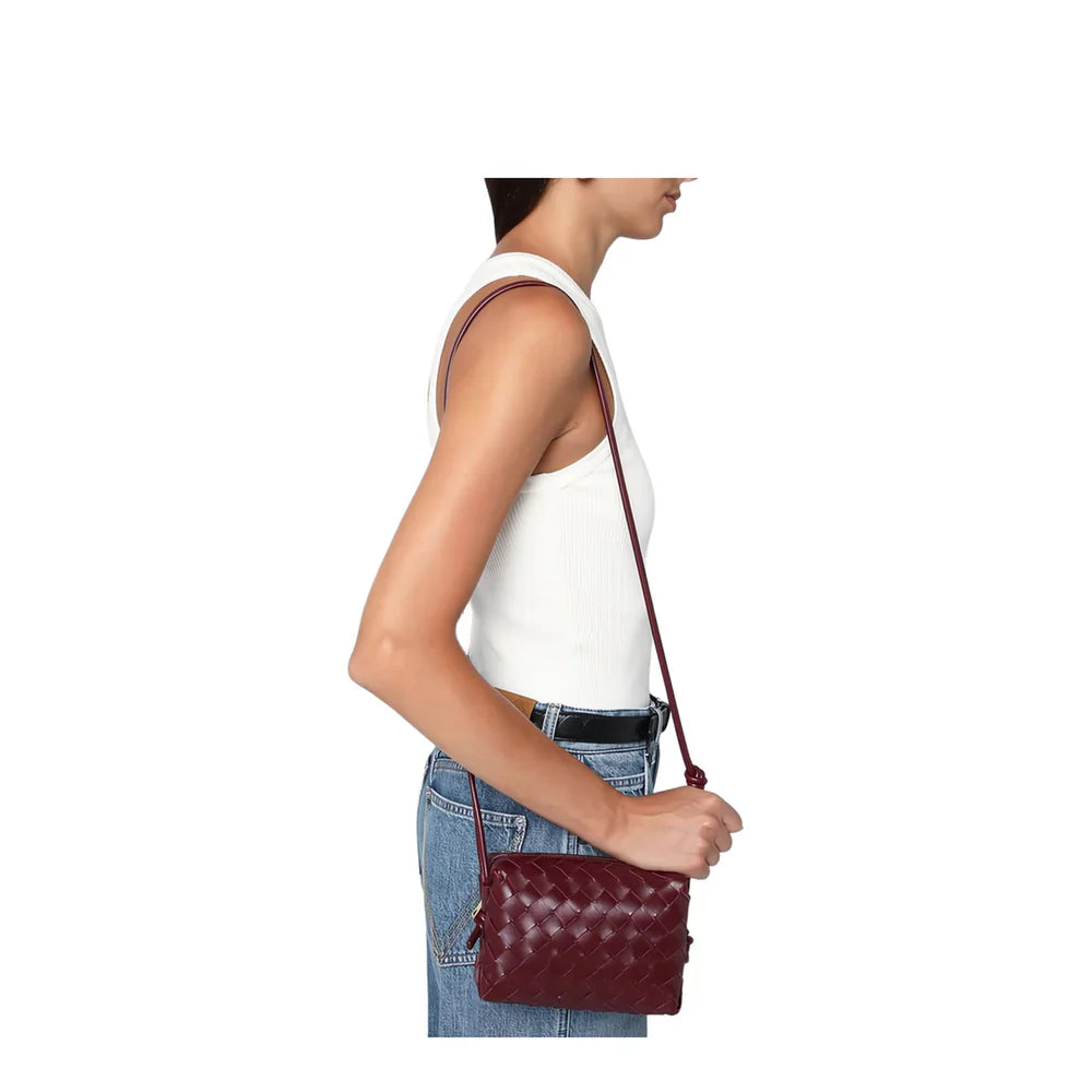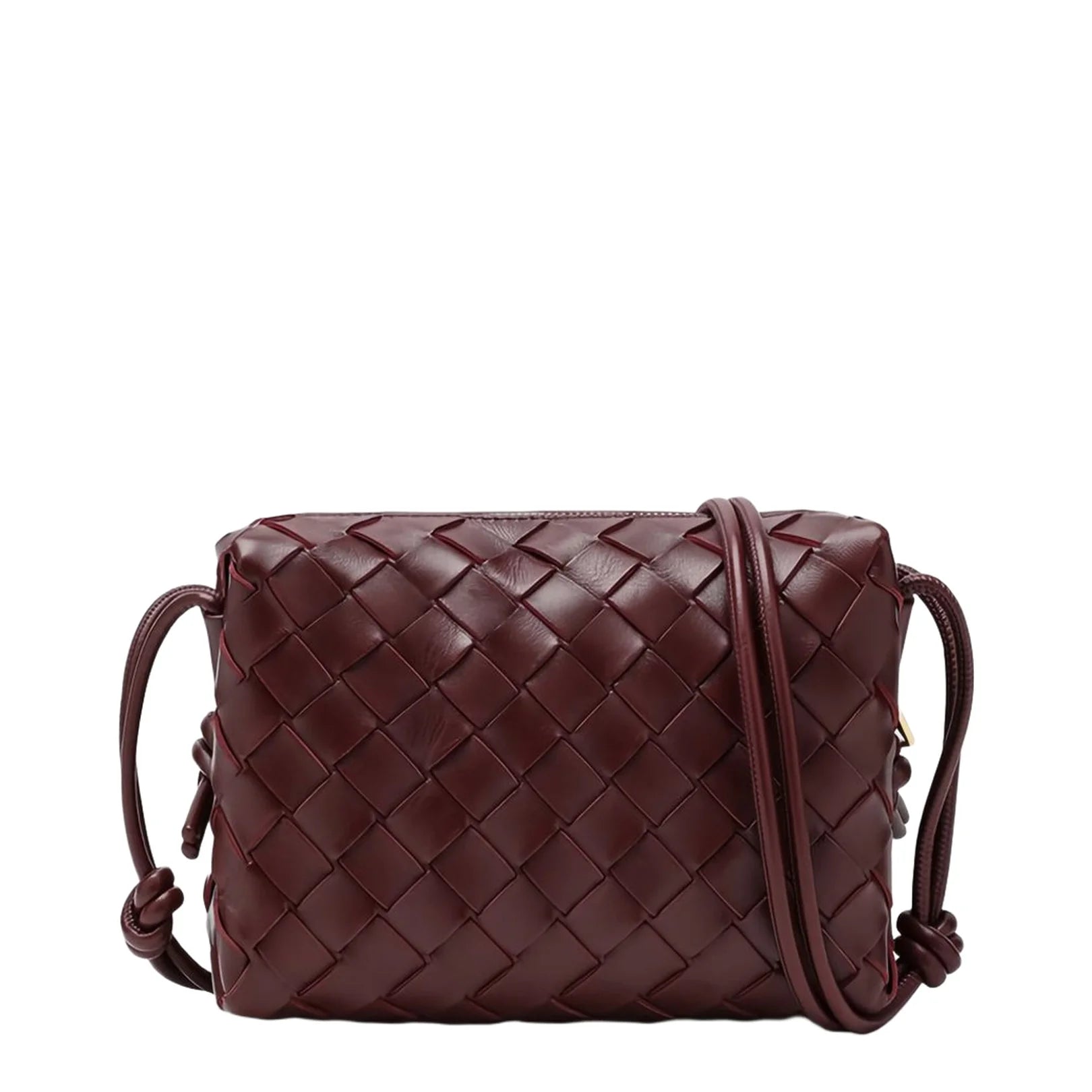 Bolso bandolera de piel intrecciato con detalles de nudos característicos.