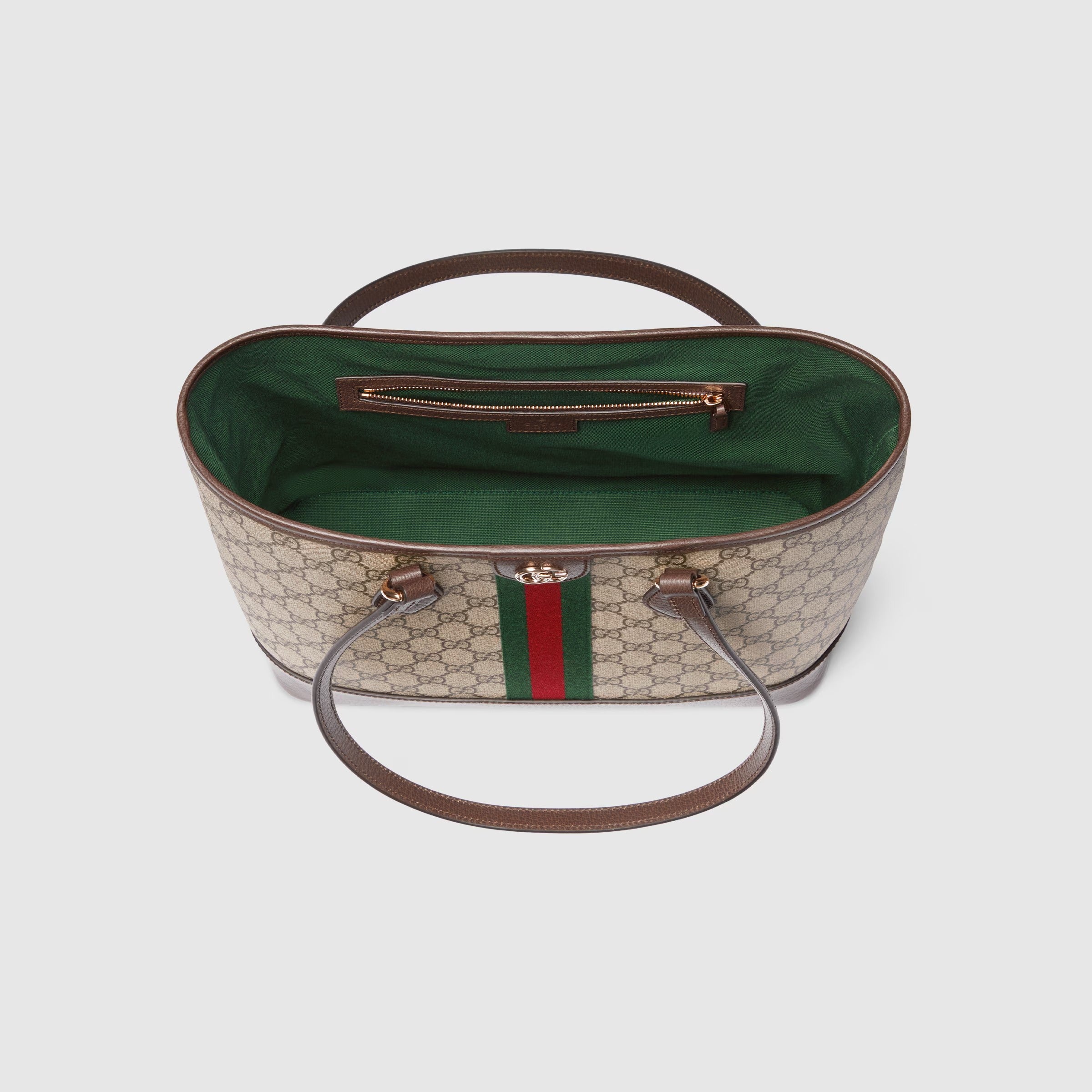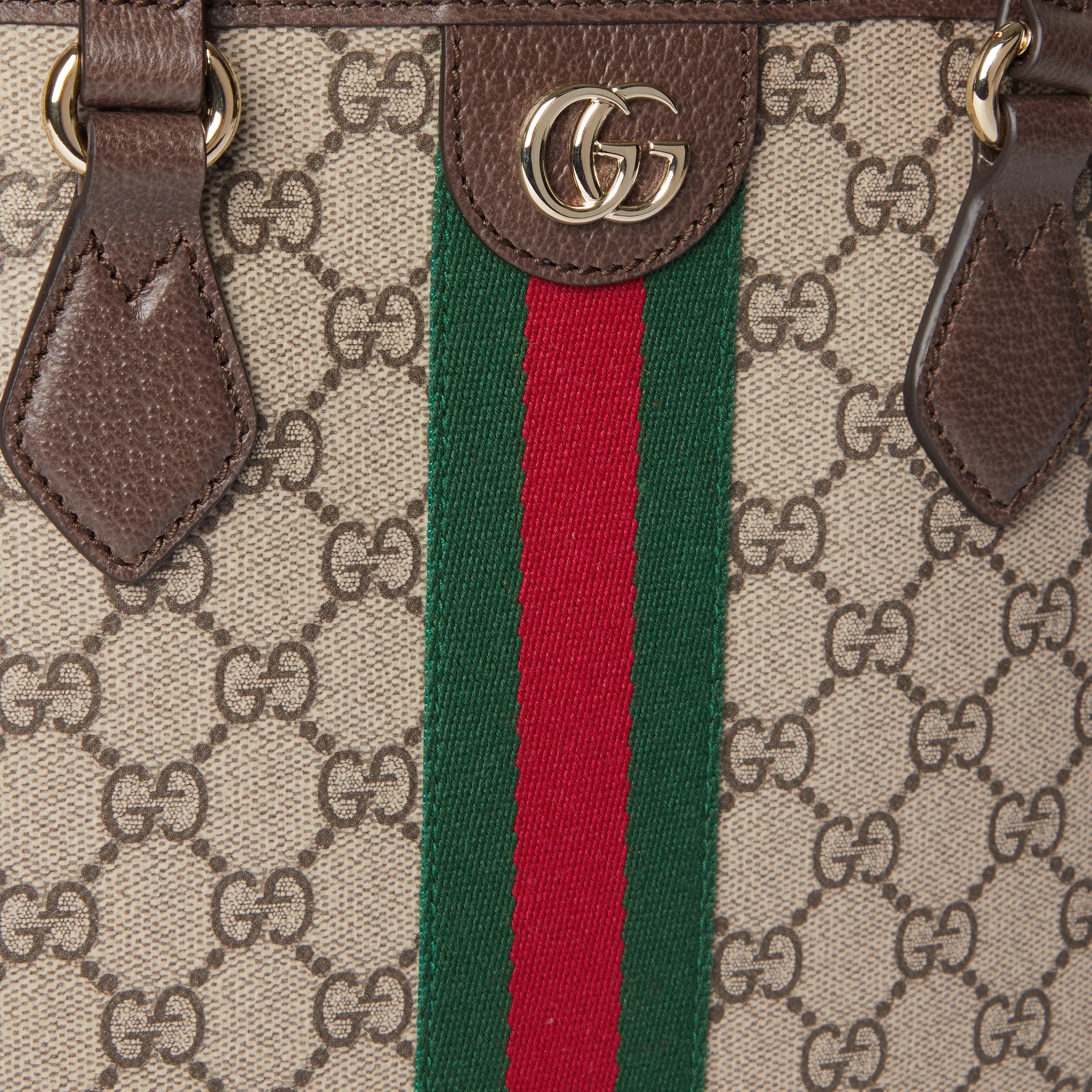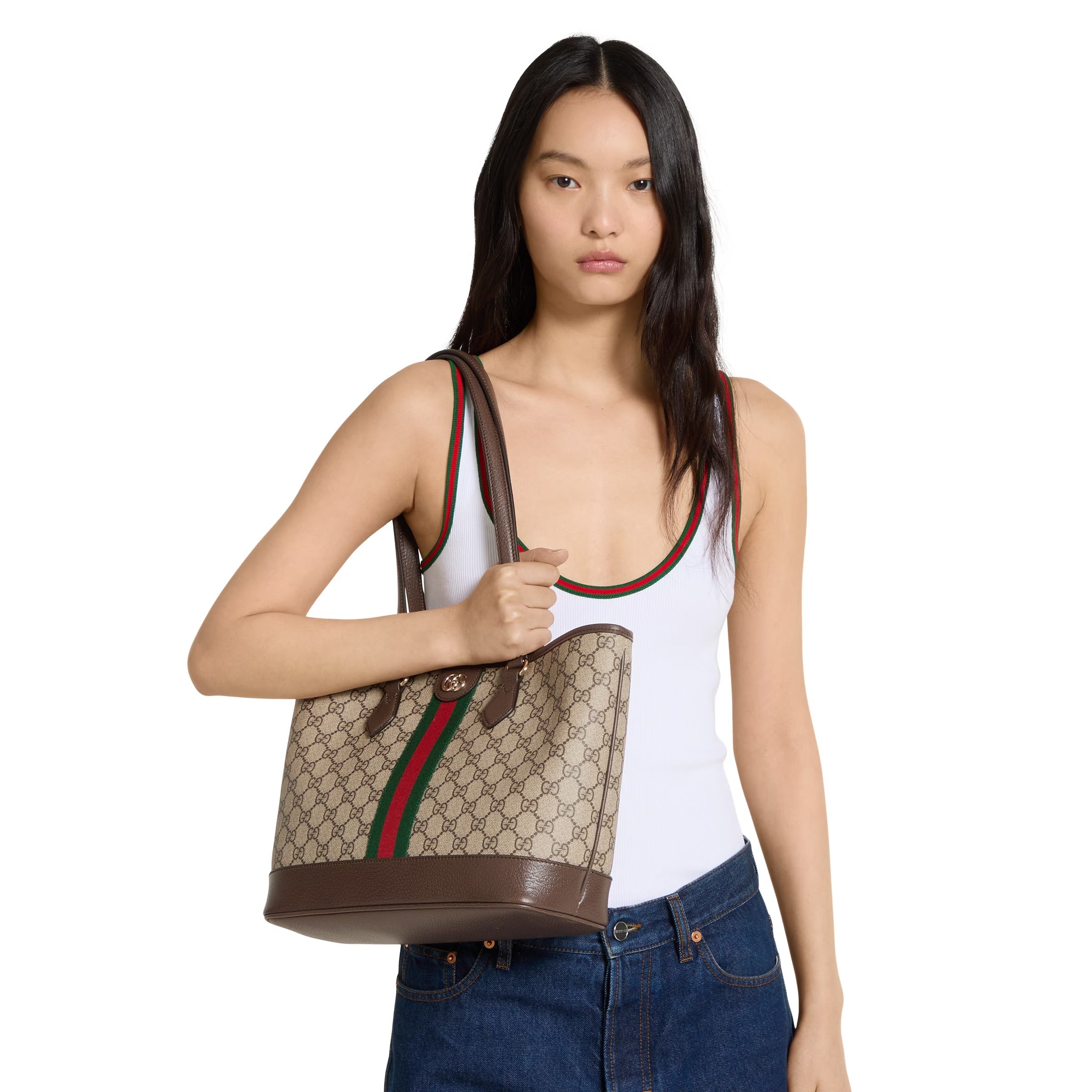 The Ophidia collection evokes the House’s heritage with the signature Web stripe and Double G emblem in light gold-toned finish. The styles are crafted from soft GG Monogram coated fabric, featuring green cotton lining inside.