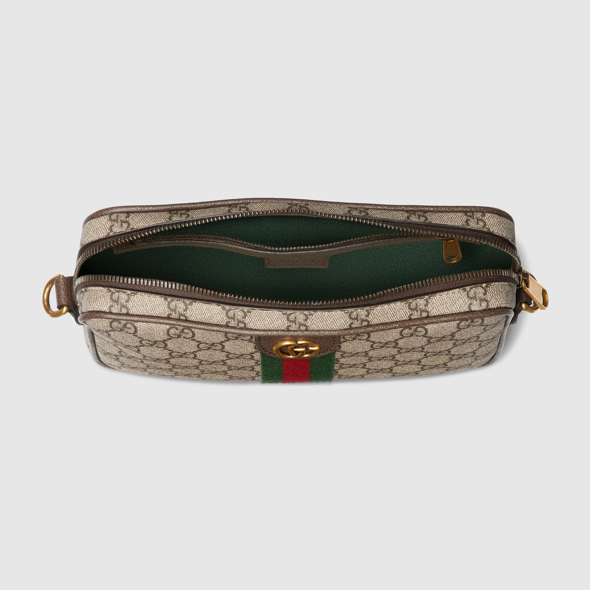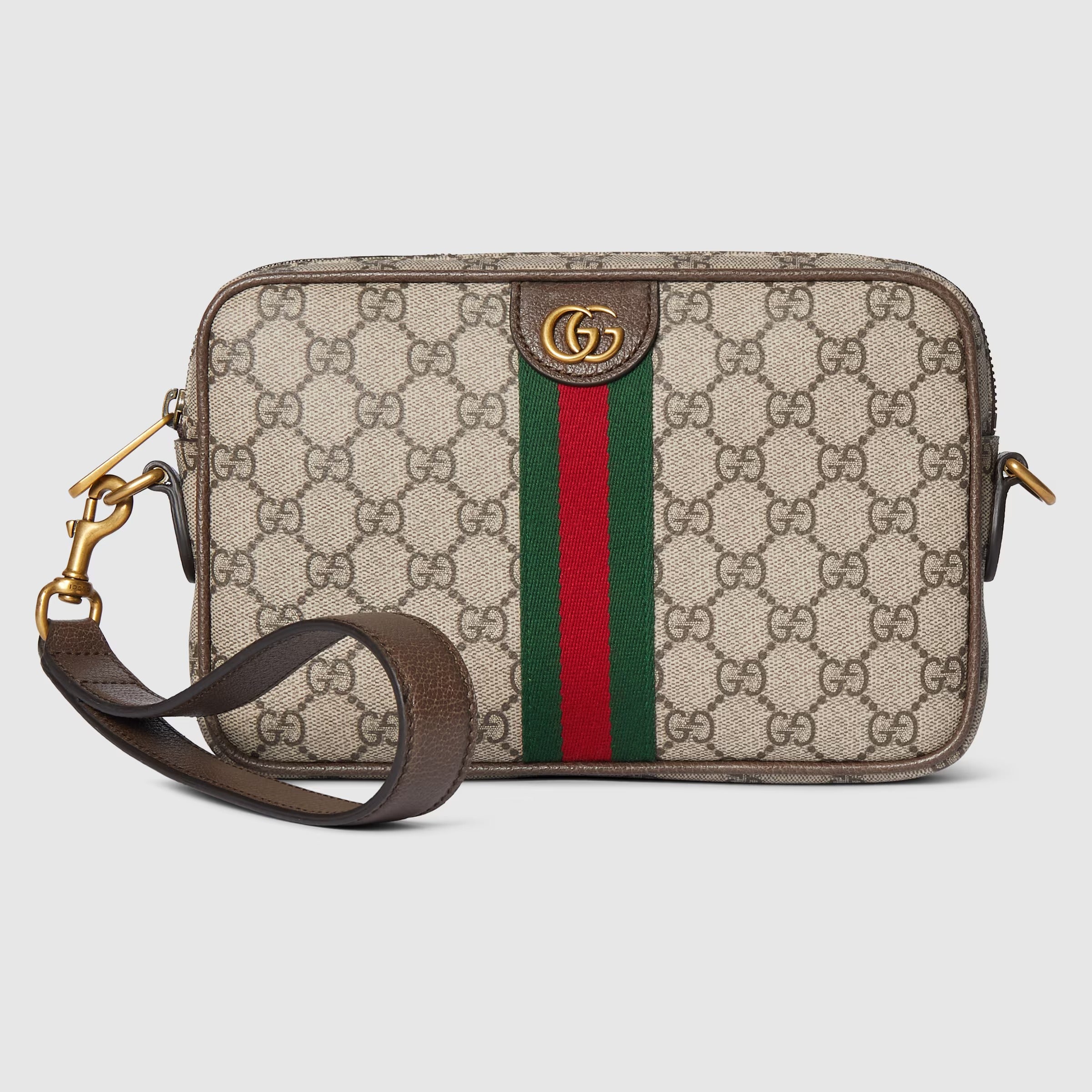 The Ophidia collection evokes the House’s heritage with the signature Web stripe and Double G emblem in light gold-toned finish. The styles are crafted from soft GG Monogram coated fabric, featuring green cotton lining inside.