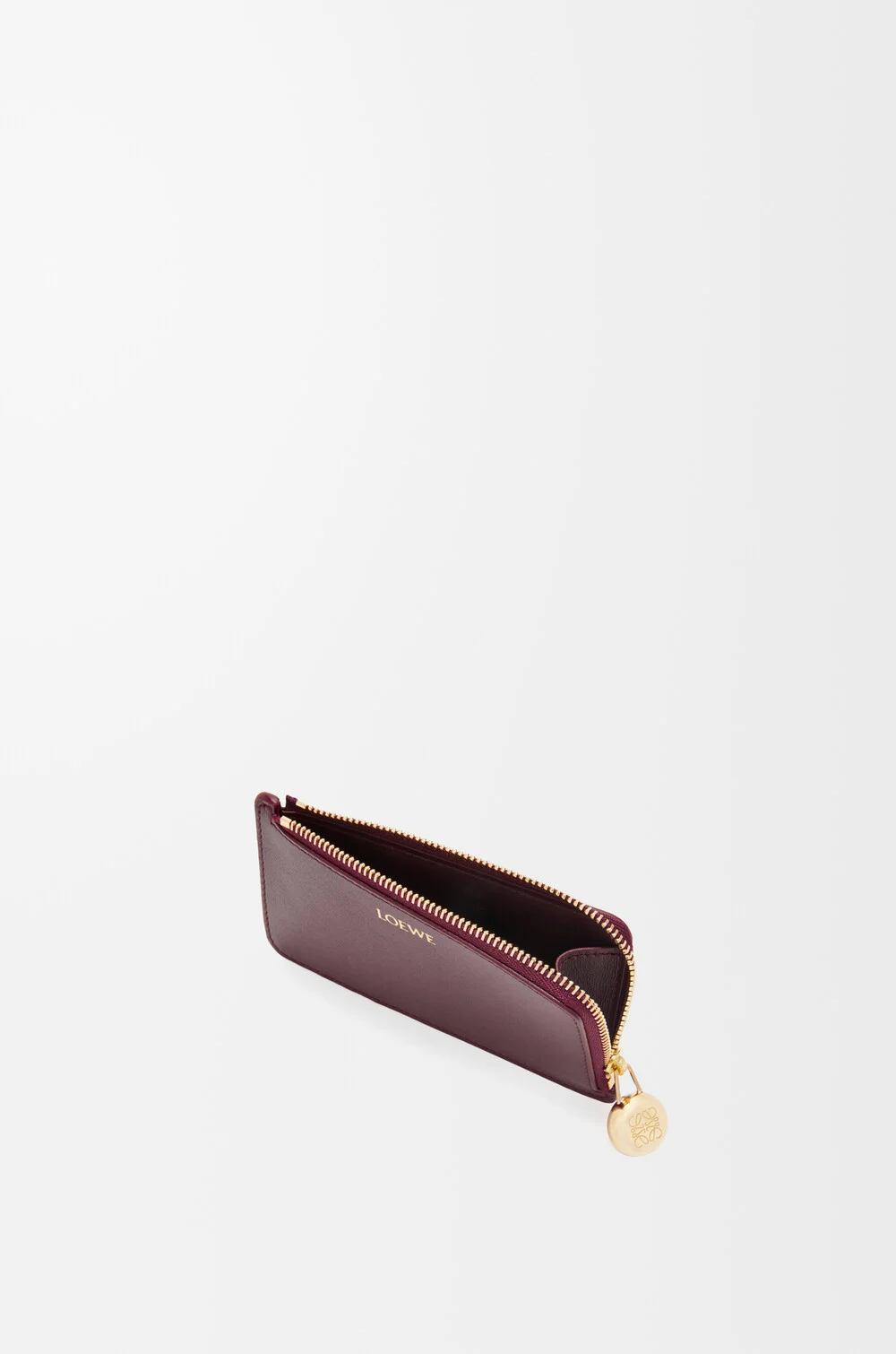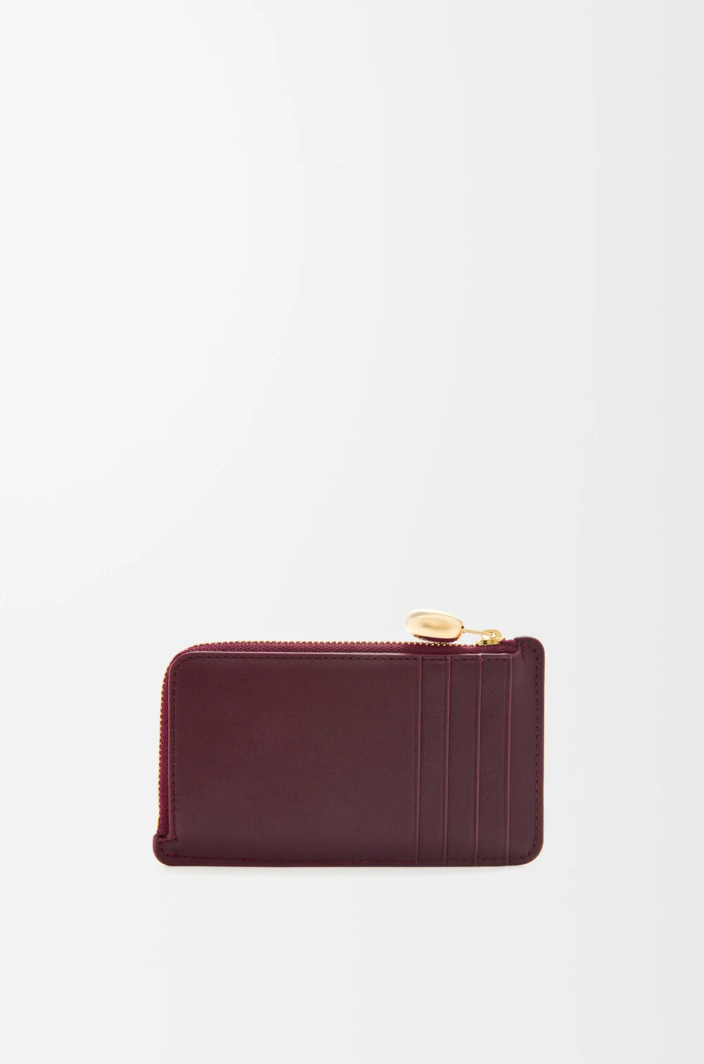 Monedero tarjetero en piel de becerro napa brillante con tirador de cremallera Anagram Pebble característico.