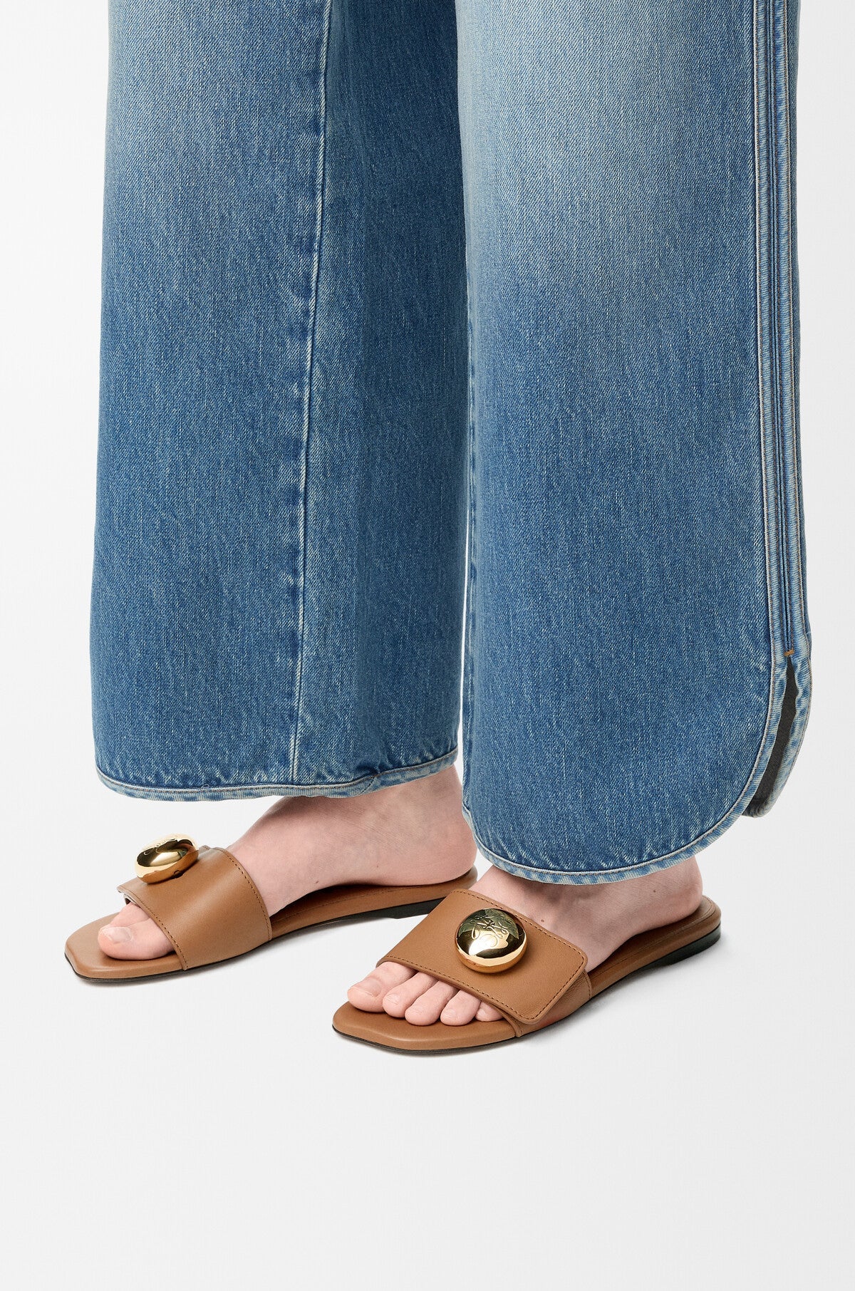 Sandalias de piel de becerro suave con puntera en forma de pétalo y detalle dorado Anagram Pebble en la parte superior.