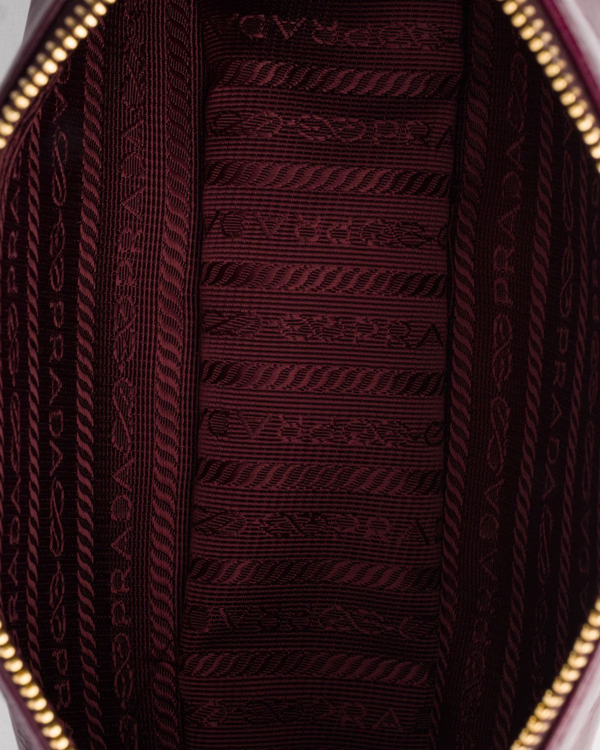 Reedición de un estilo icónico de 2002, este bolso de hombro resume los códigos de Prada en una silueta versátil y refinada que establece un diálogo entre el lenguaje estilístico del pasado y el presente. Fabricado en piel con un refinado acabado brillante, este sofisticado y minimalista accesorio puede llevarse tanto de día como de noche gracias a su elegante asa de cadena extraíble. Adornado con herrajes metálicos, el diseño se completa con el llavero de piel y el logotipo triangular de metal esmaltado.