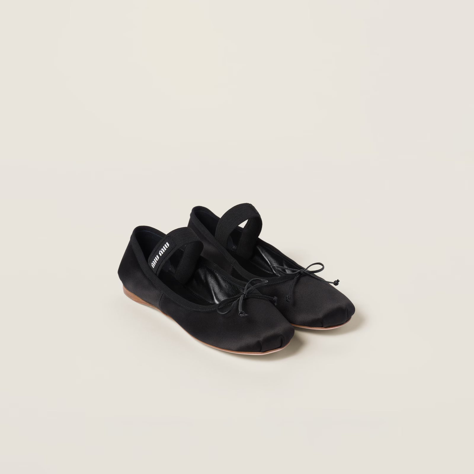 Estas bailarinas, un estilo icónico y distintivo de las colecciones Miu Miu presentadas durante el desfile Otoño Invierno 2022, son un diseño original confeccionado en satén y decorado con detalles muy femeninos como el lazo y la banda elástica con el logotipo.