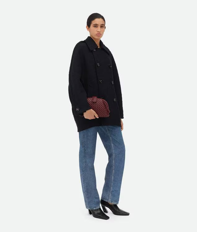 • Mini bolso de mano pequeño acolchado de piel Intrecciato con cadena metálica cruzada de piel trenzada