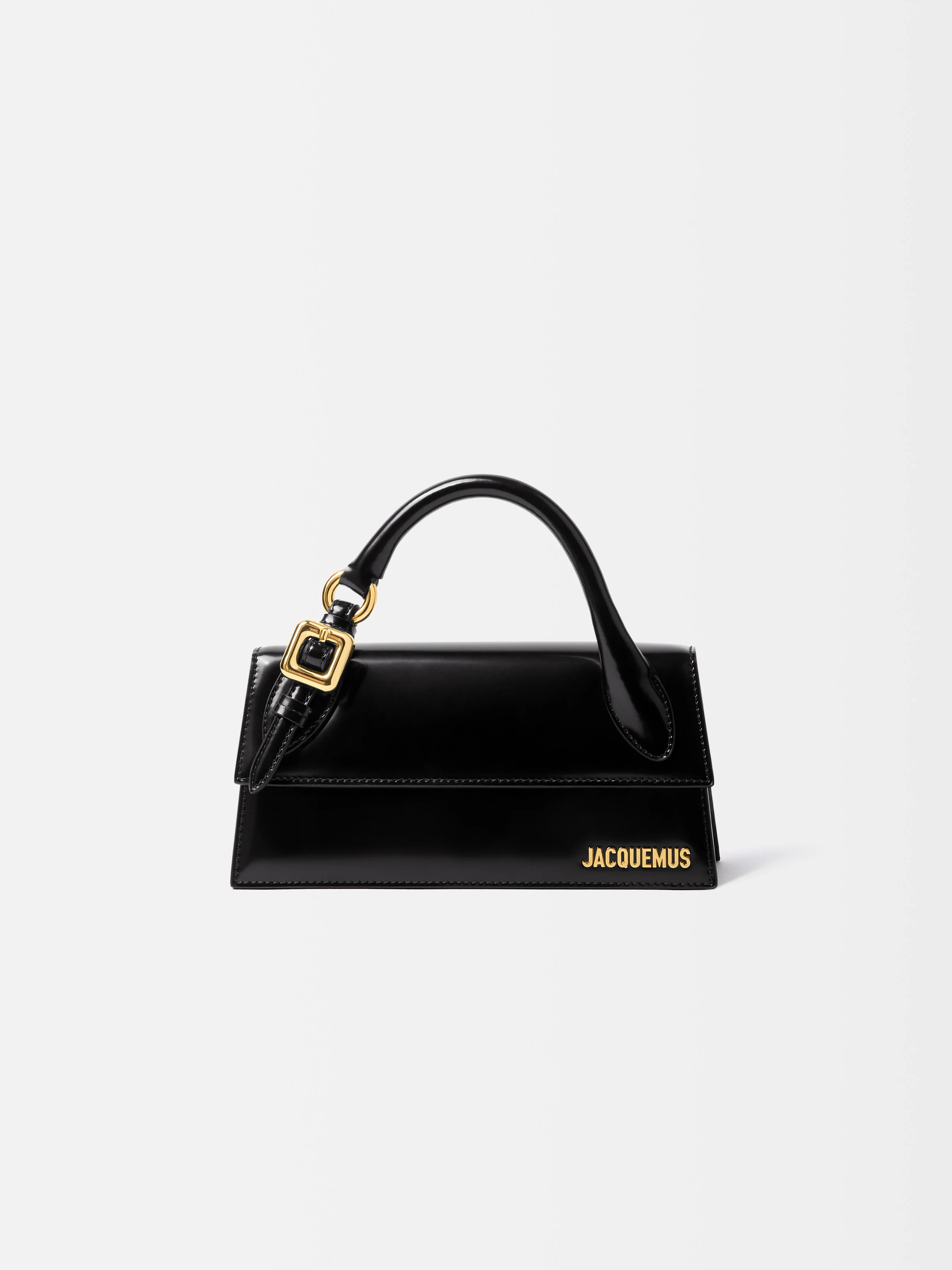 Bolso largo y estructurado de piel lisa. Asa reforzada con hebilla metálica.