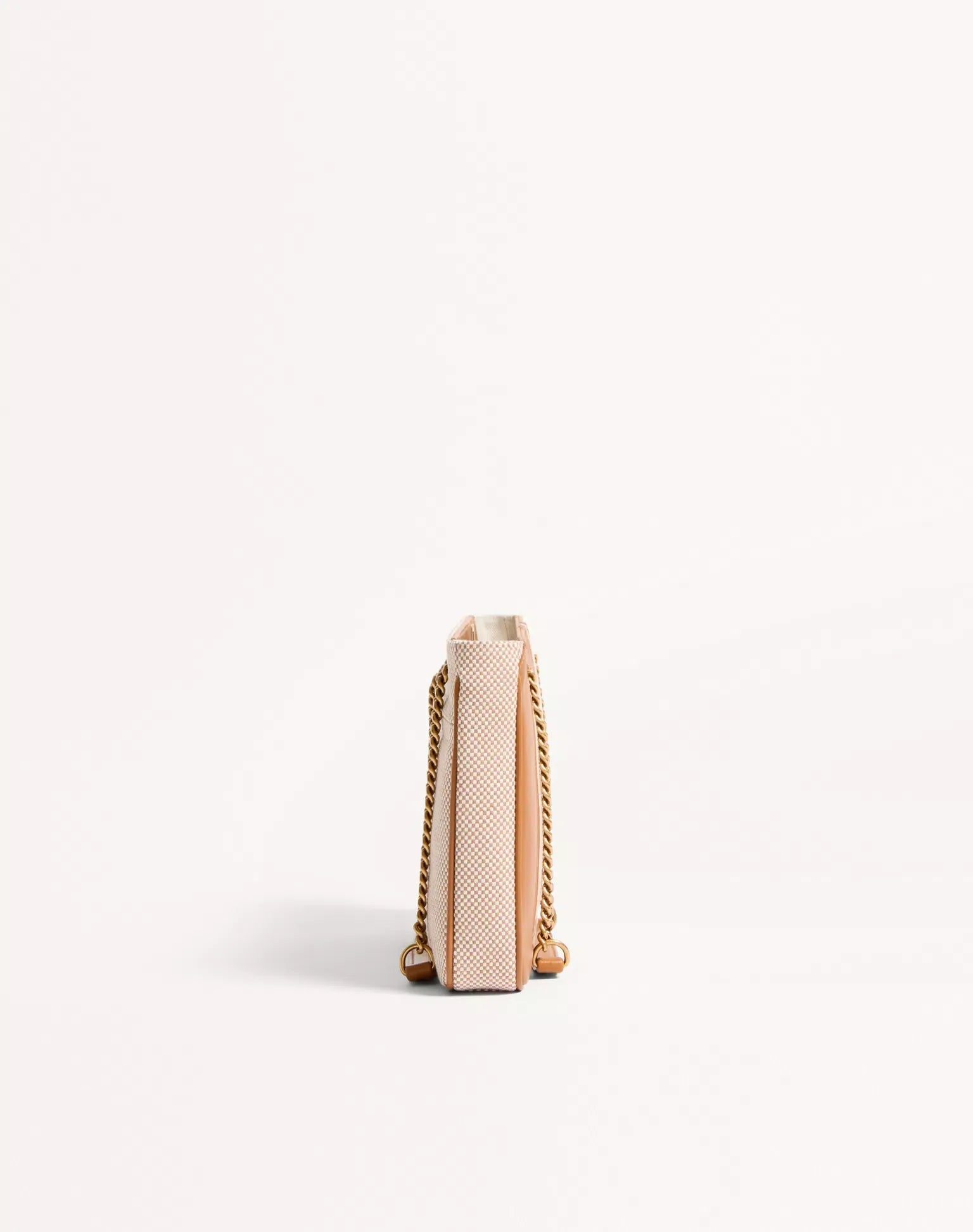 Valentino Garavani Viva Superstar small canvas shopping bag. The bag features a contrasting maxi VLogo Signature and can be worn over the shoulder or crossbody thanks to the sliding chain.