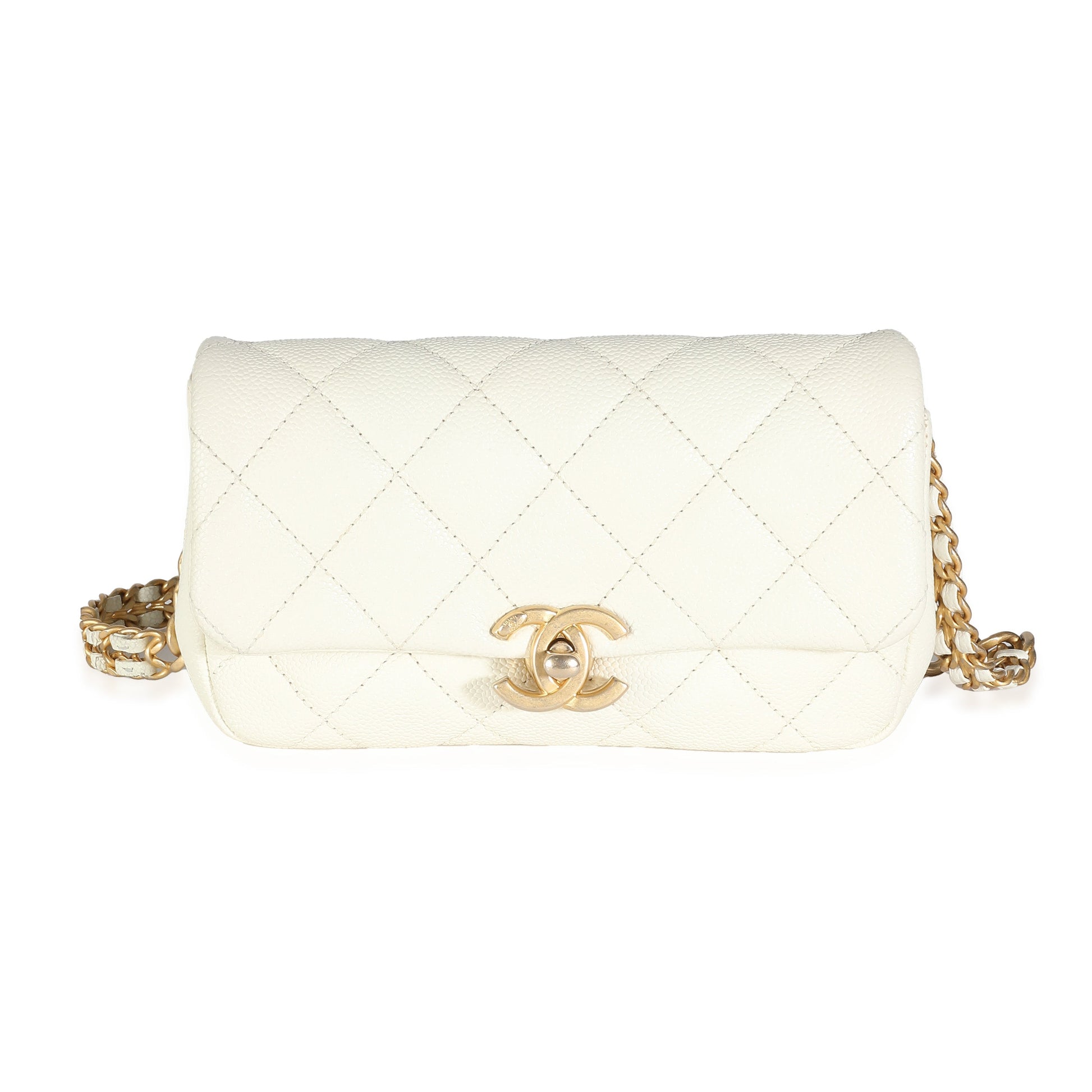 White Quilted Caviar Chain Melody Waist Belt Bag