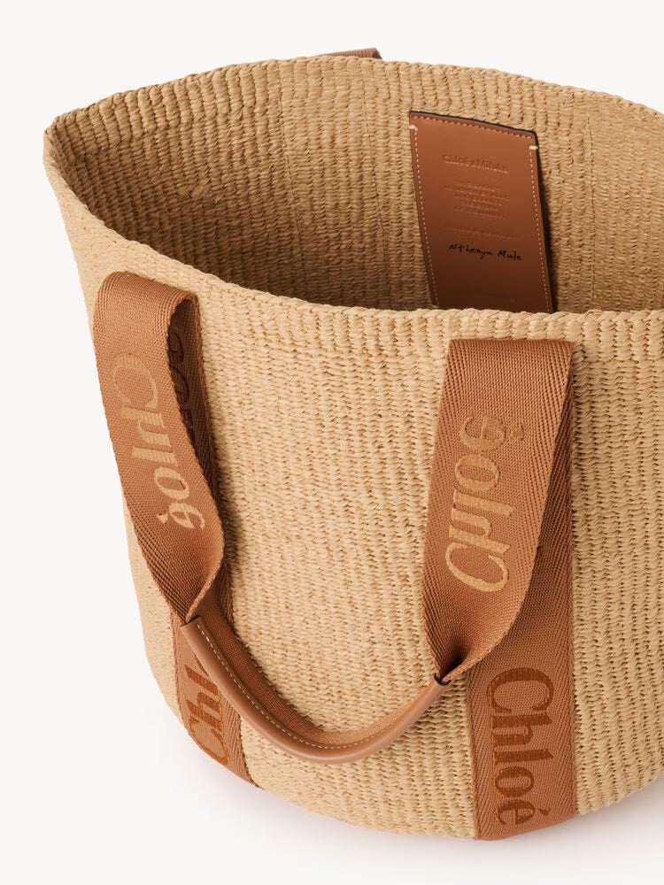 Large Woody basket bag in fair-trade paper, calfskin & polyester webbing with Chloé logo embroidery
