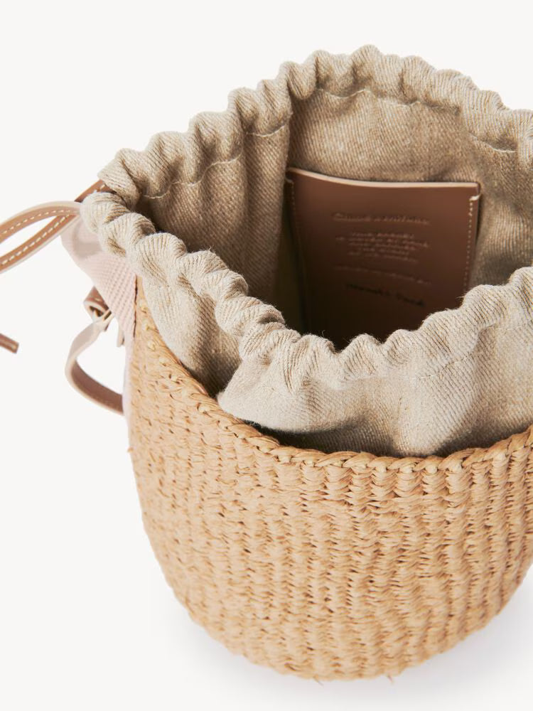 Small basket in natural fibres, calfskin & webbing with Chloé logo