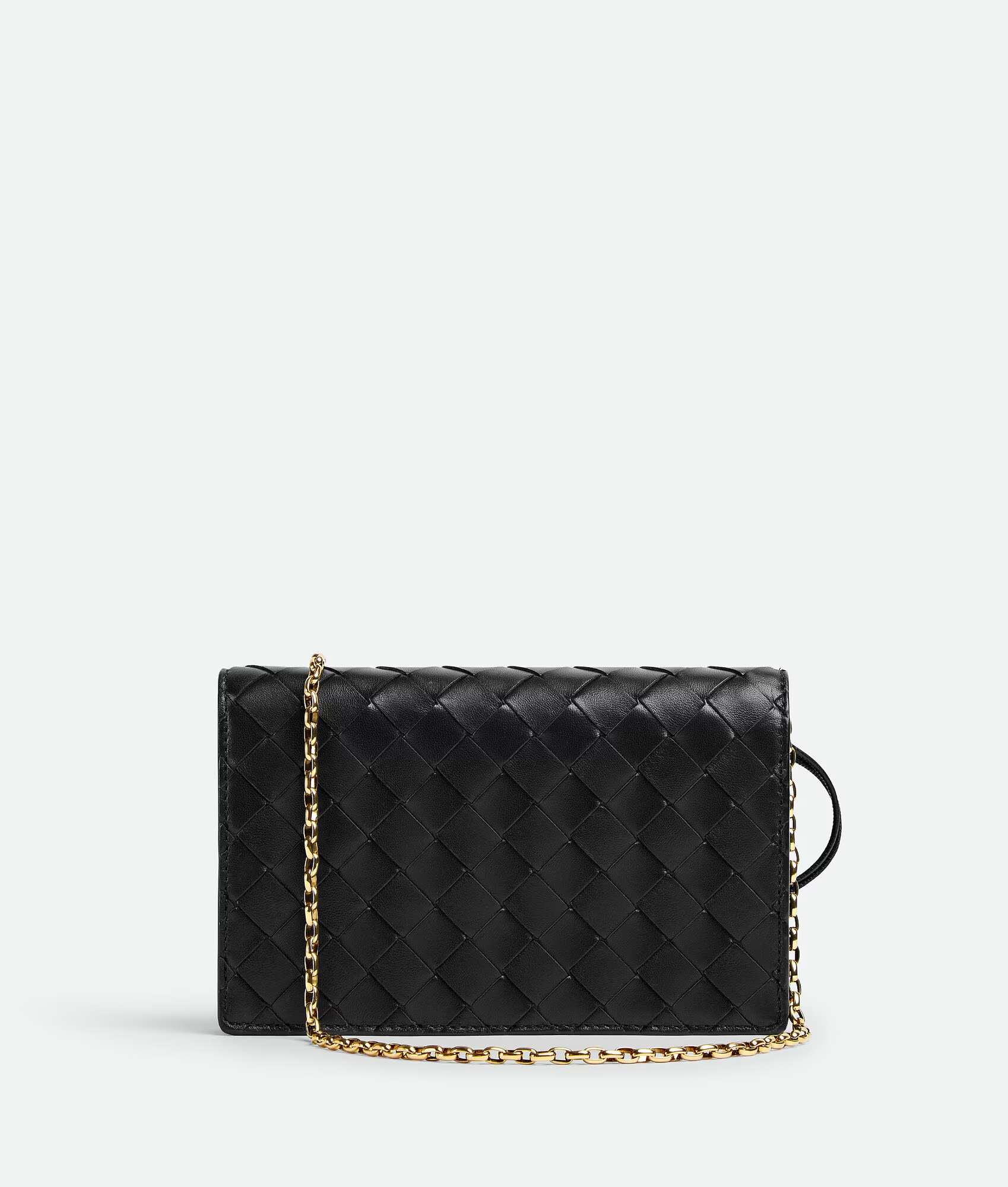 Pouch in Intrecciato nappa leather with signature knot closure and metal chain.