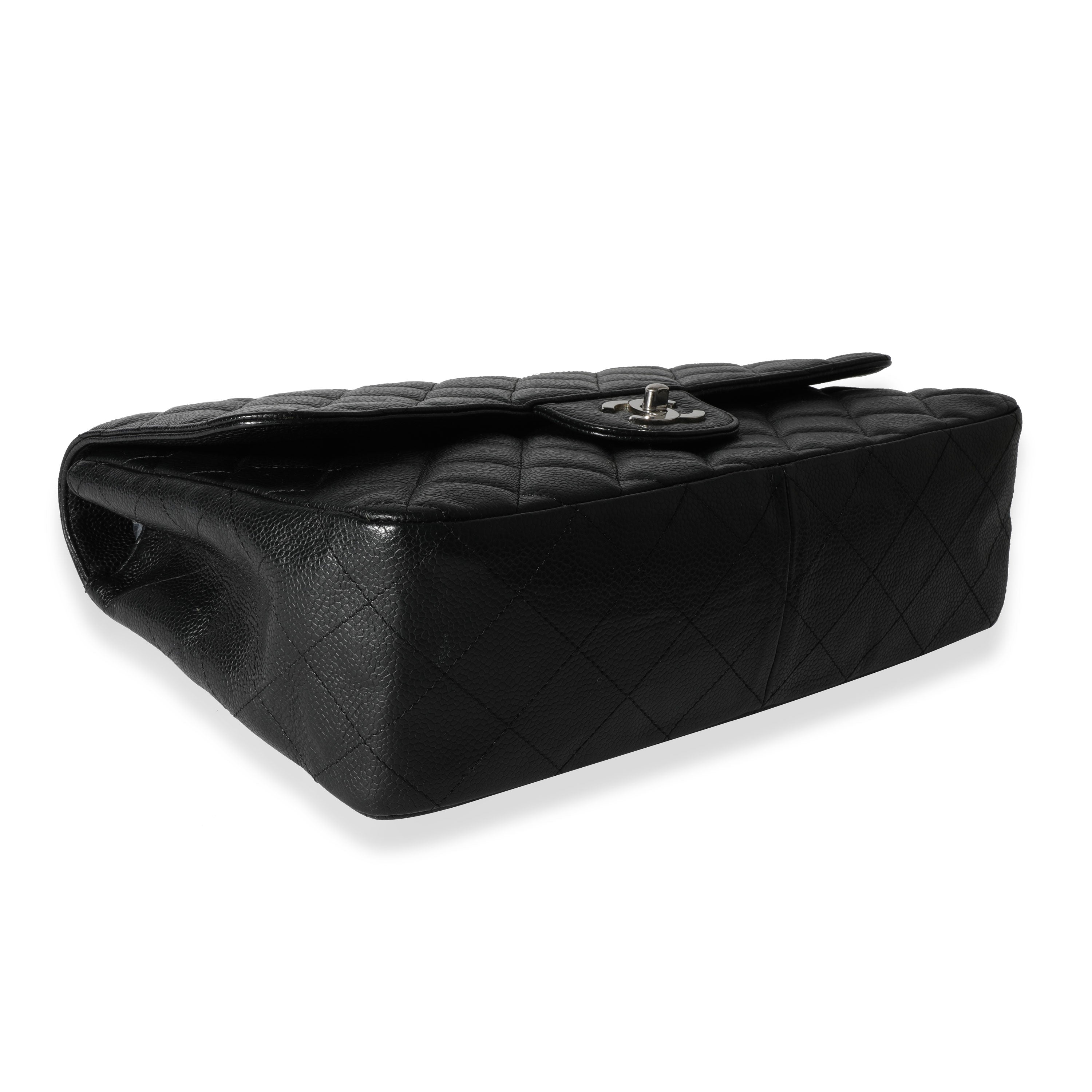 Black Quilted Caviar Jumbo Classic Single Flap Handbag