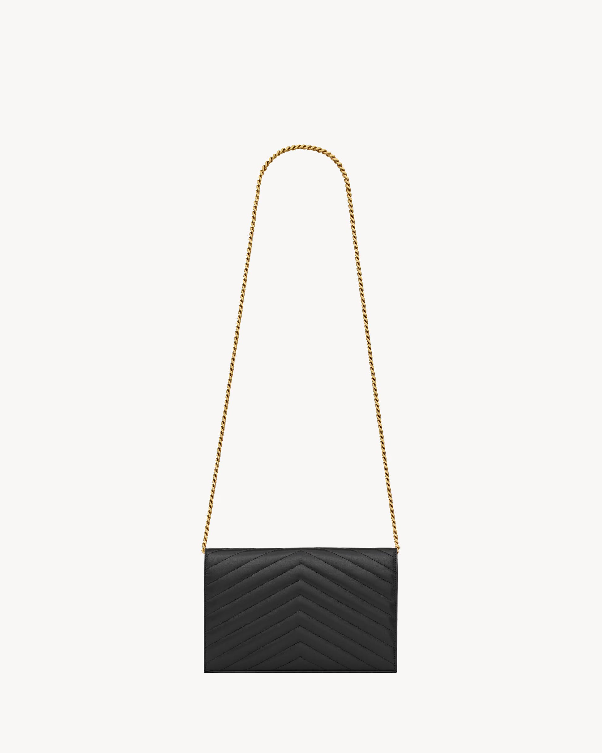 Timeless chain purse with cassandre embellishment and iconic chevron quilting.