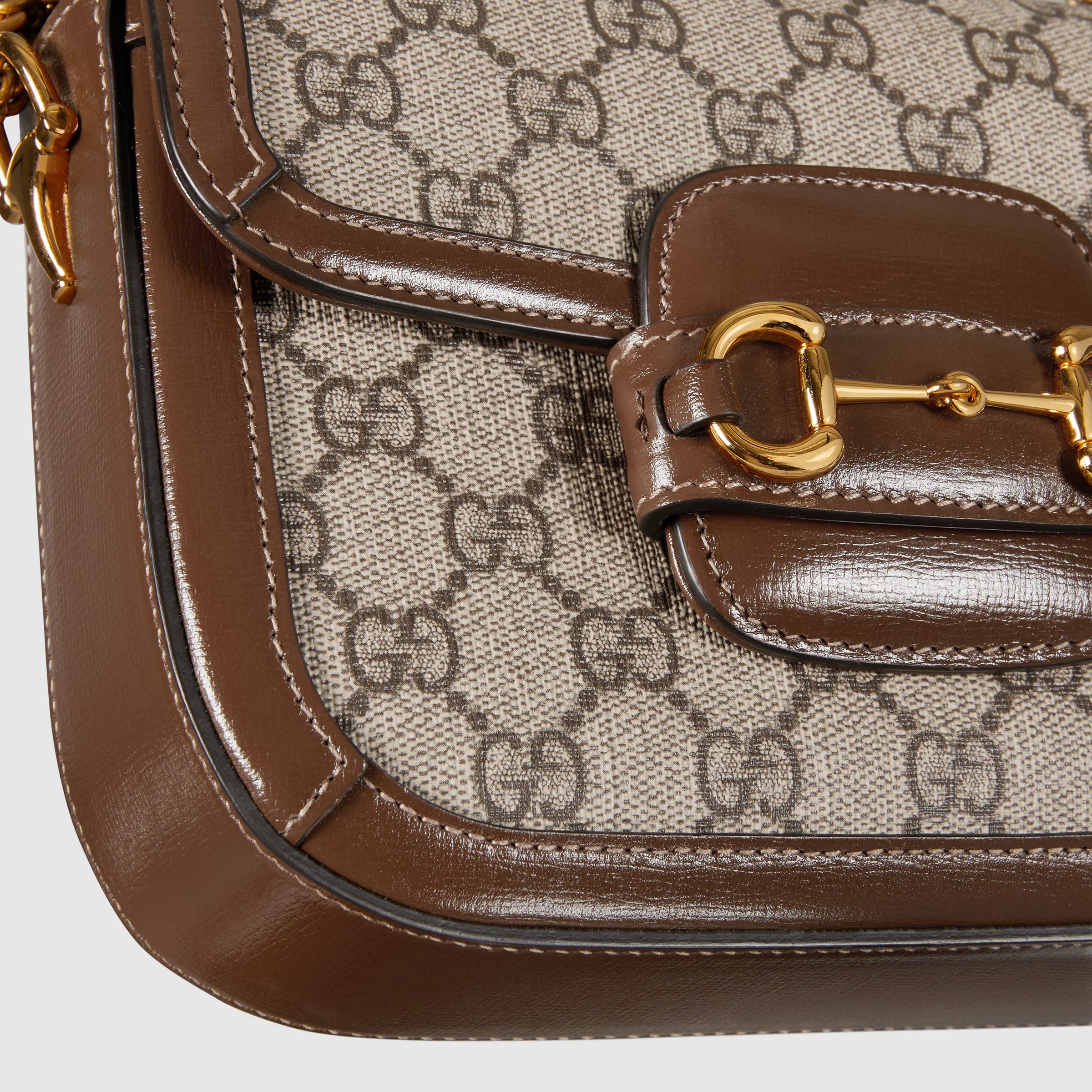 Small versions of the Gucci Horsebit 1955 add a contemporary twist to the vintage inspired line. Enriched with two different shoulder straps, the bag transforms from understated elegance with a tonal leather strap to a strong logo feel thanks to a red and green Web option.