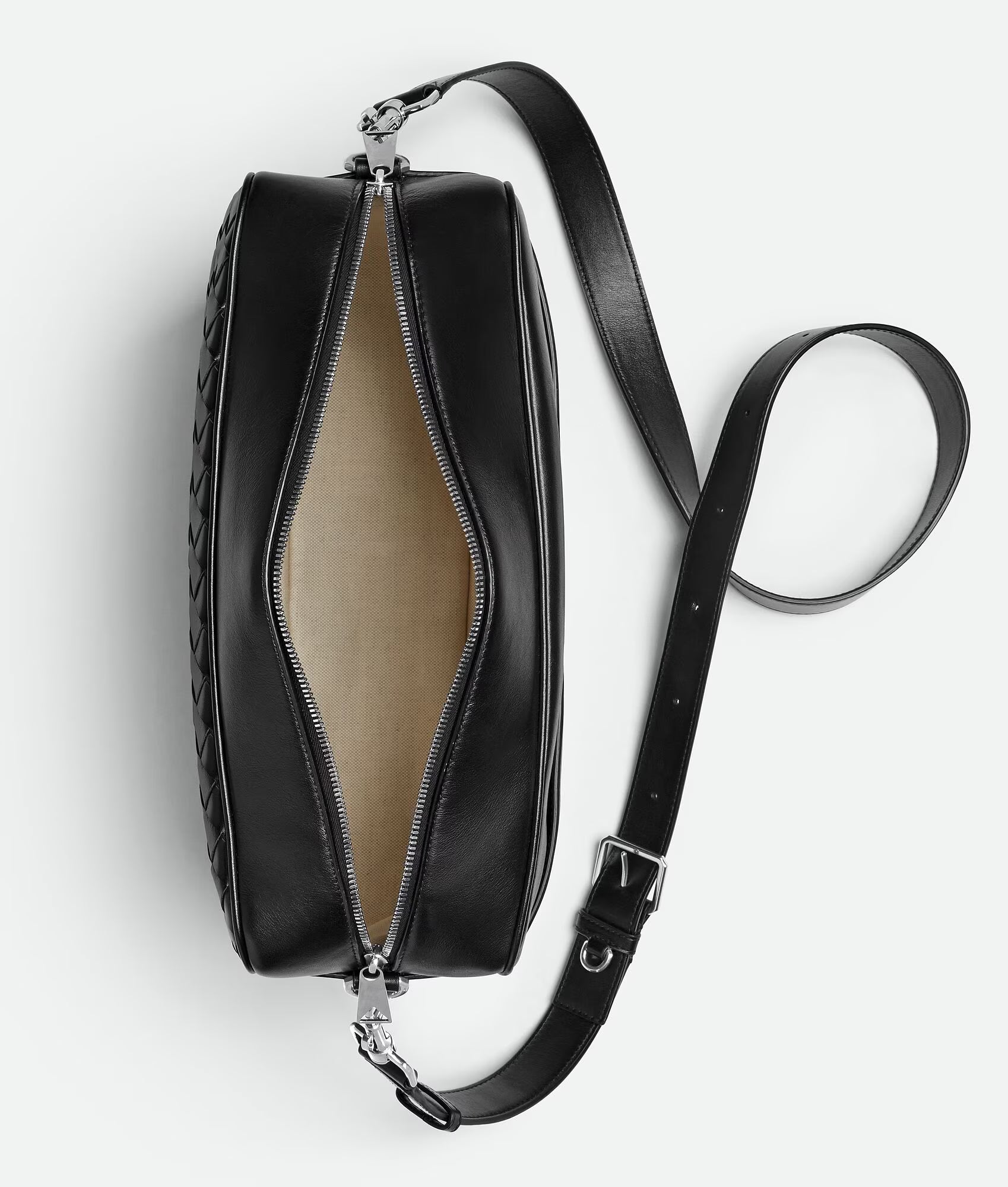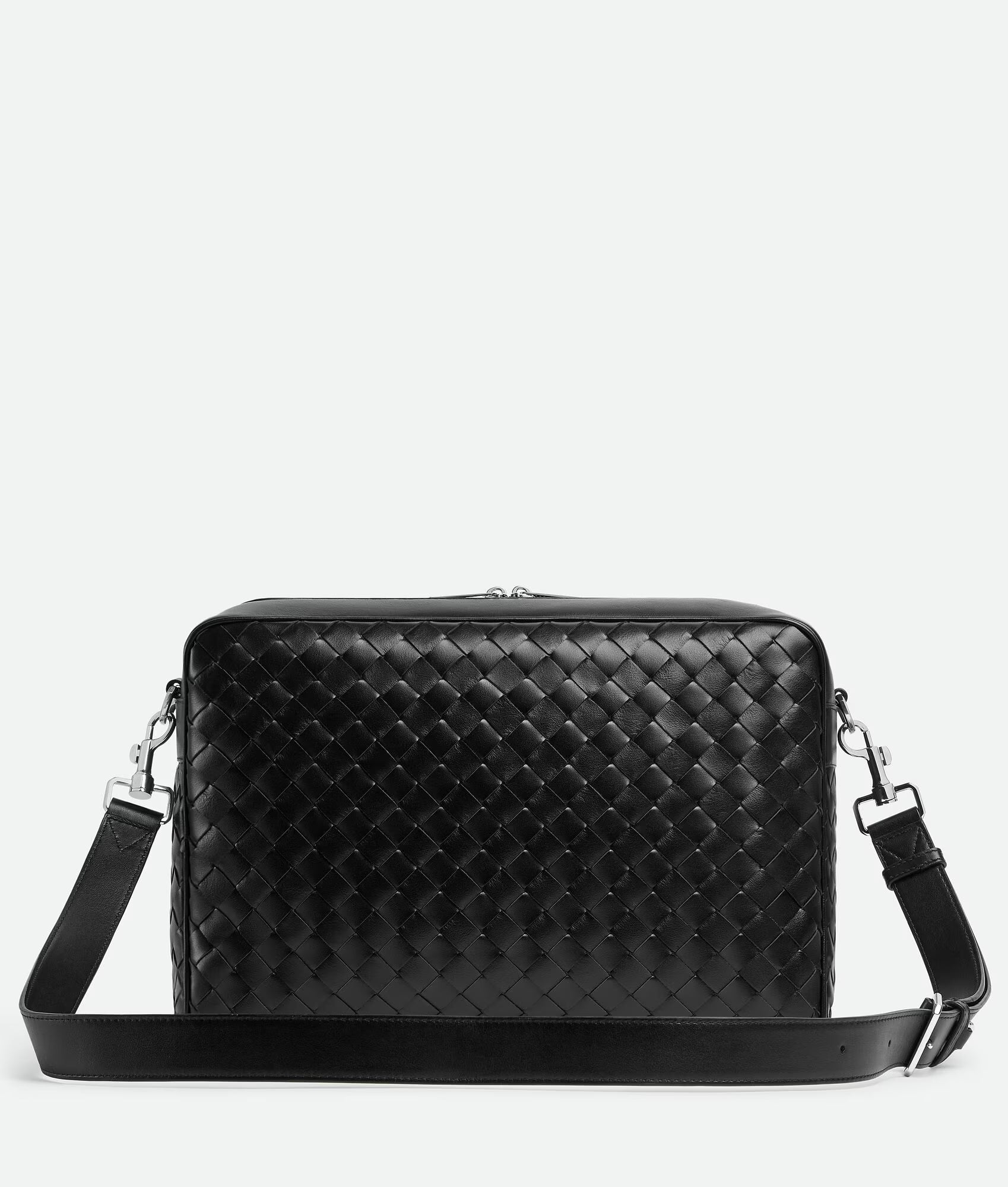 • Large Intrecciato leather cross-body bag with detachable strap and metal D-ring