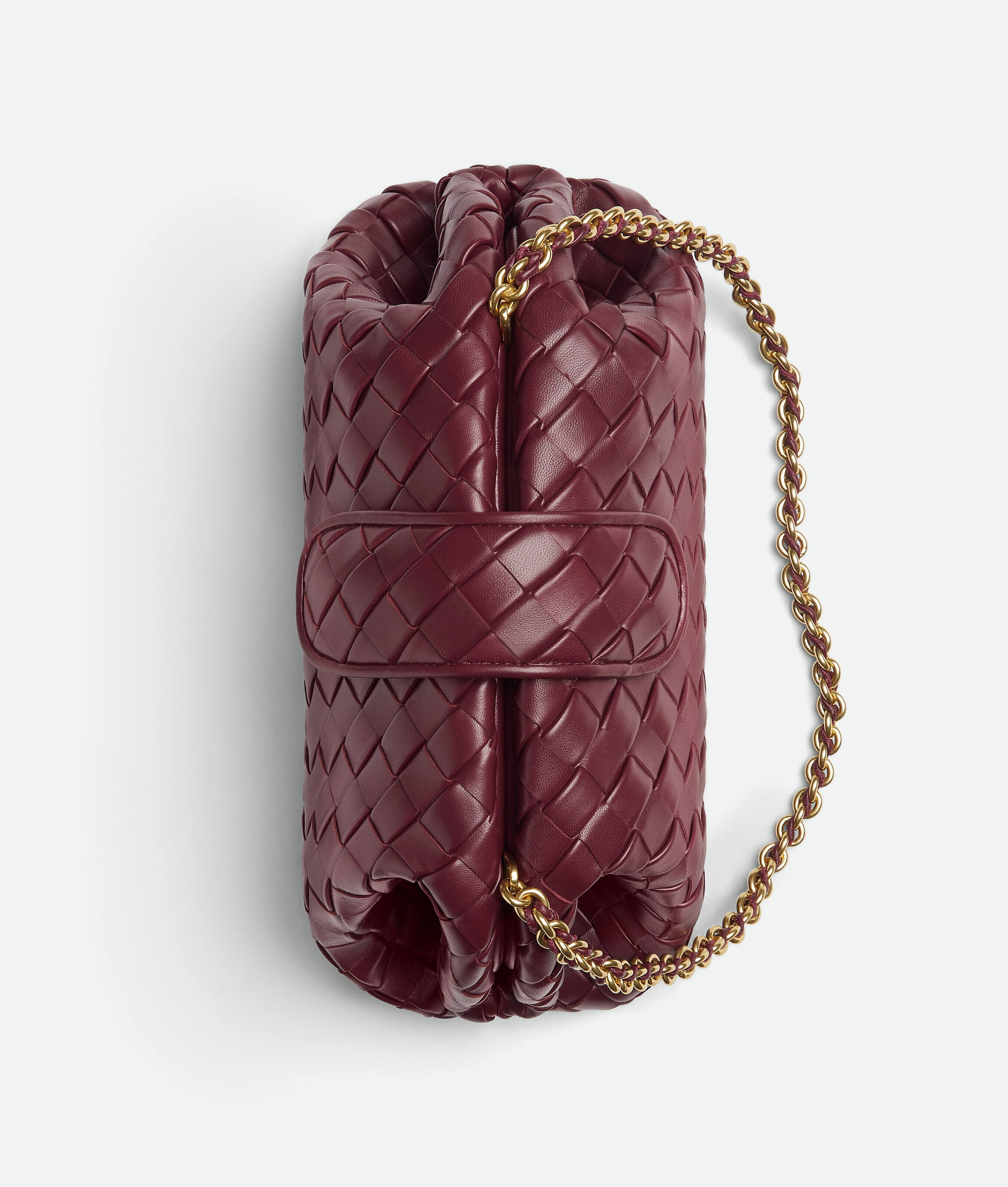 Lauren 1980 clutch in padded Intrecciato leather with tubular leather braided metal chain.