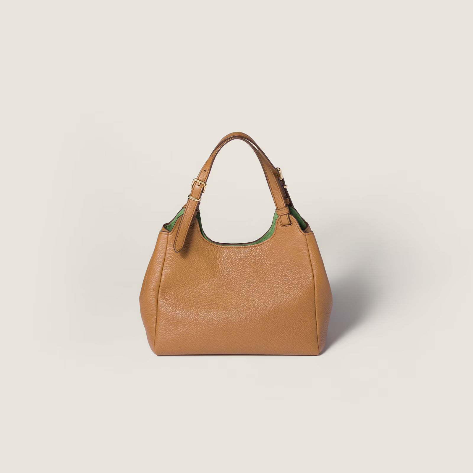 This sleek and versatile handbag stands out for its adjustable handles that offer different options for use. Craftsmanship and sophistication emerge from the contrasts in color and texture between soft nappa leather and suede, enriched with fascinating hanging tricks.