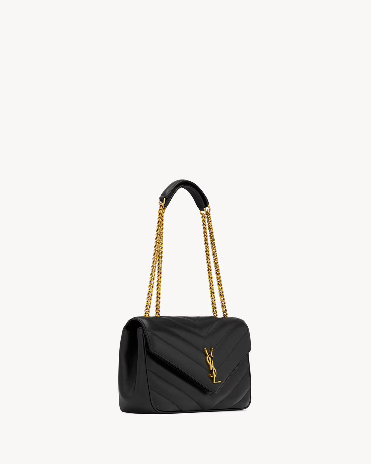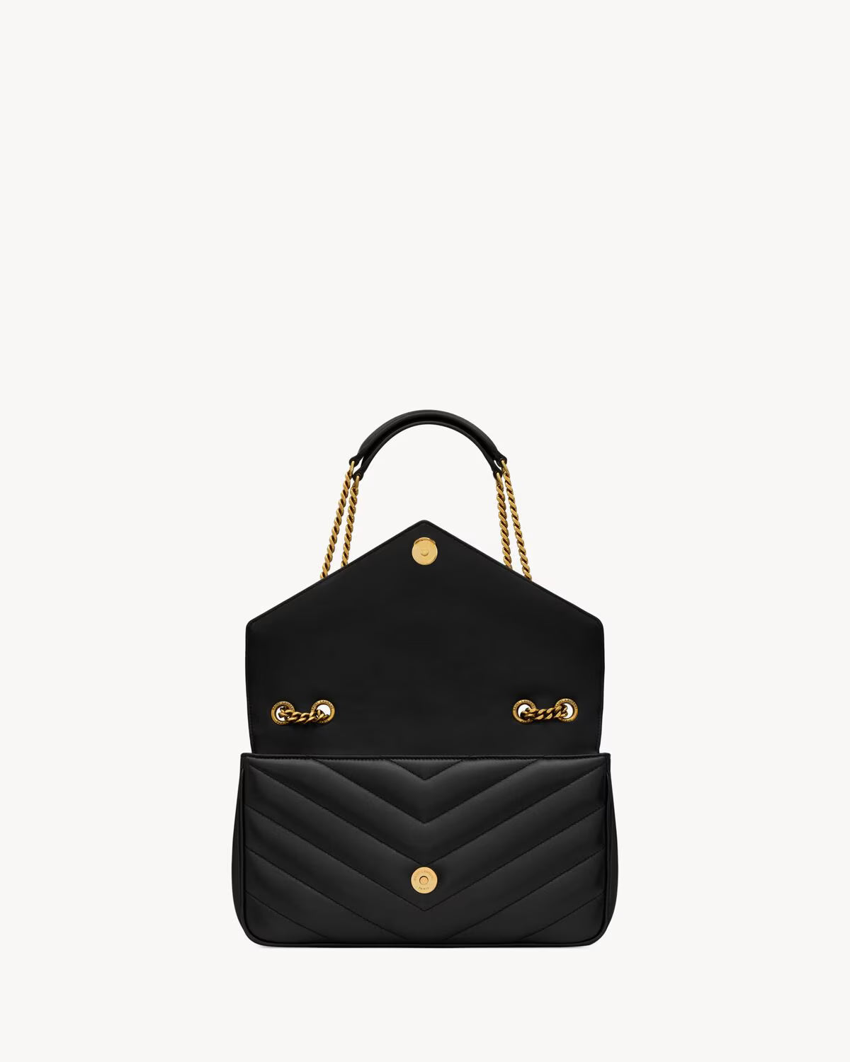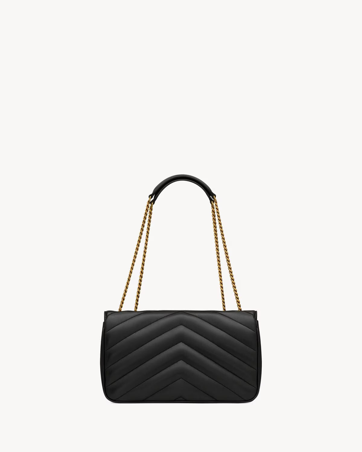 Chain bag in soft lambskin with chevron-quilted topstitching.