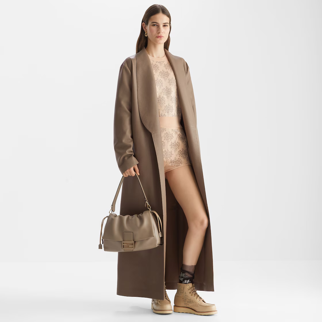 Iconic large Mamma Baguette bag, created in the late 1990s as a larger version of the iconic Baguette, hence the name Mamma Baguette. Updated for the Spring/Summer 2025 fashion show with a soft, deconstructed look, it retains the original elements of the bag and the iconic under-the-arm design.