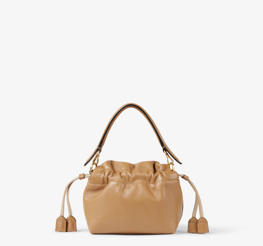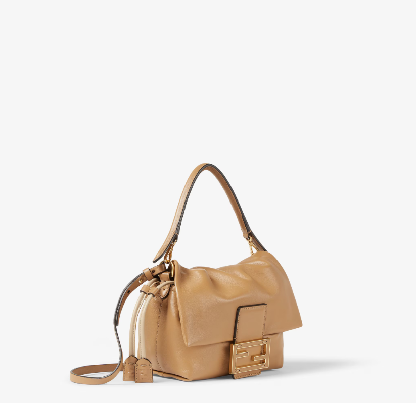 Made of soft cappuccino-colored nappa leather, completed by an FF clasp with tone on tone leather insert.