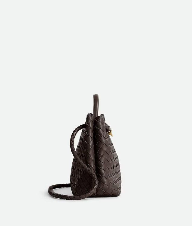 Top handle bag in supple Intrecciato leather with signature knot detail and sliding cross-body strap.