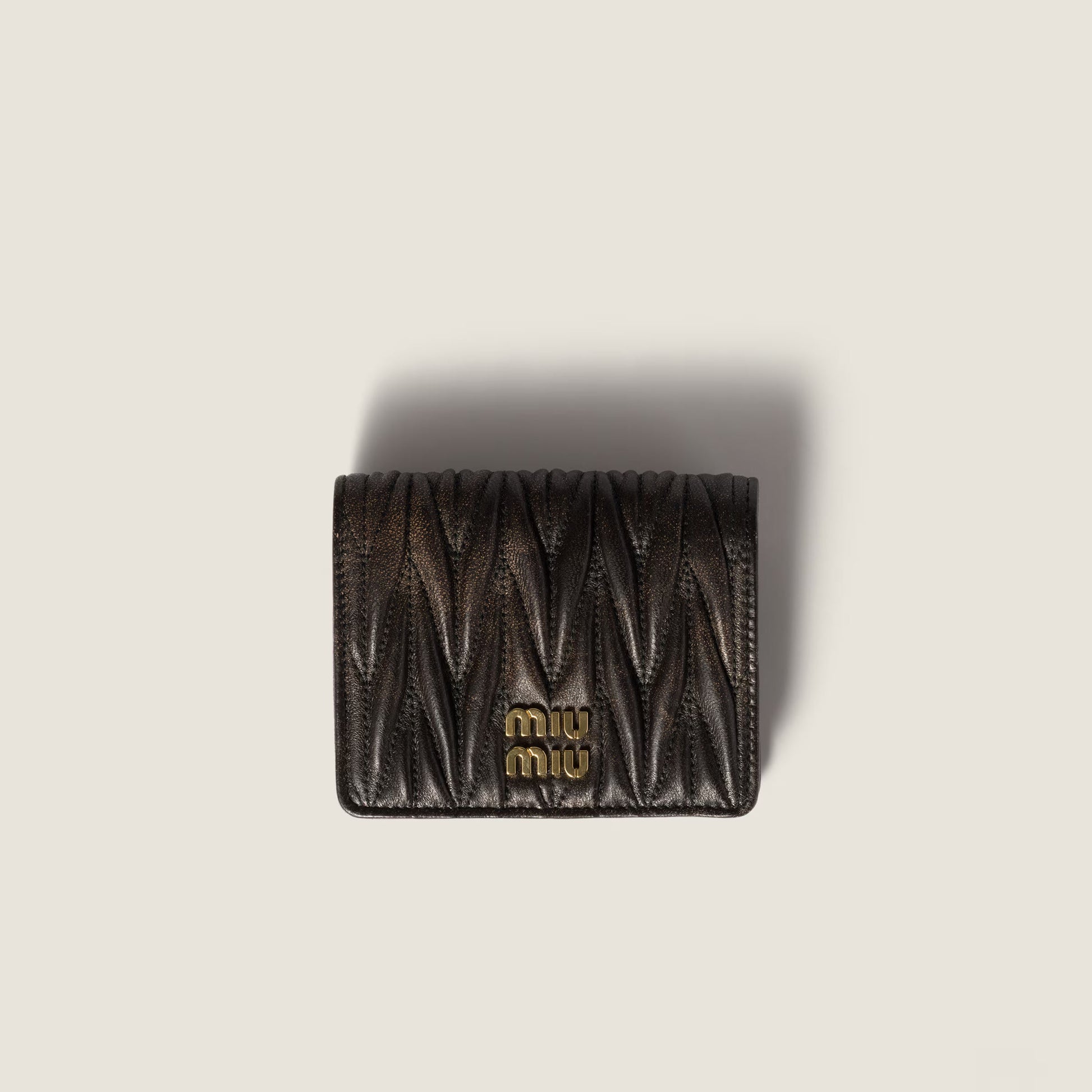 The metal lettering logo of this wallet stands out thanks to the special vintage treatment of the matelassé nappa leather that combines artisan sophistication and the bold character of the compact design.