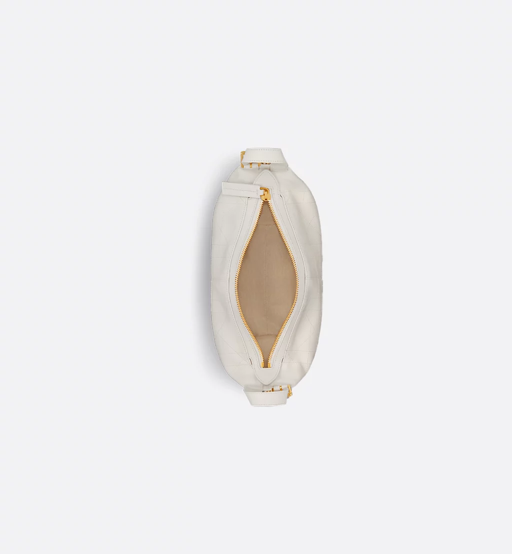 The D-Journey bag offers a new take on the hobo silhouette with a modern supple design. The style is crafted in latte vintage smooth calfskin with Flat Macrocannage topstitching in an interpretation of the House's iconic motif. The main compartment is completed by a zip pocket, while two decorative side pockets showcase a large leather pull with the Christian Dior Paris signature. Featuring adjustable leather top handles and a leather strap, the small D-Journey bag can be carried by hand, worn over the shoulder or crossbody as a daily companion.