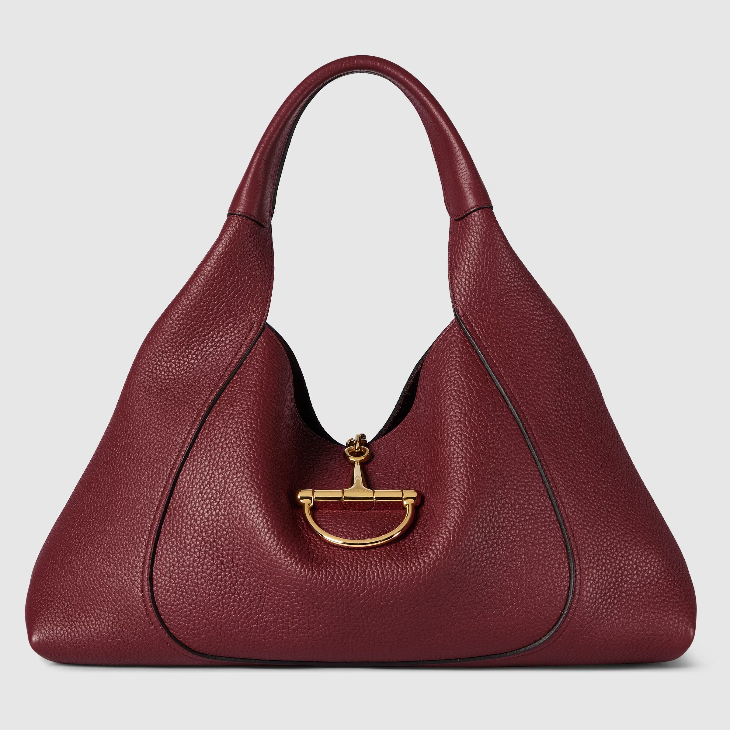 The new Gucci Softbit shoulder bag reimagines the House’s signature hardware as an oversized half Horsebit. It is both aesthetic and functional as the magnetic closure of the relaxed silhouette, crafted from supple, grainy leather with a rich texture.