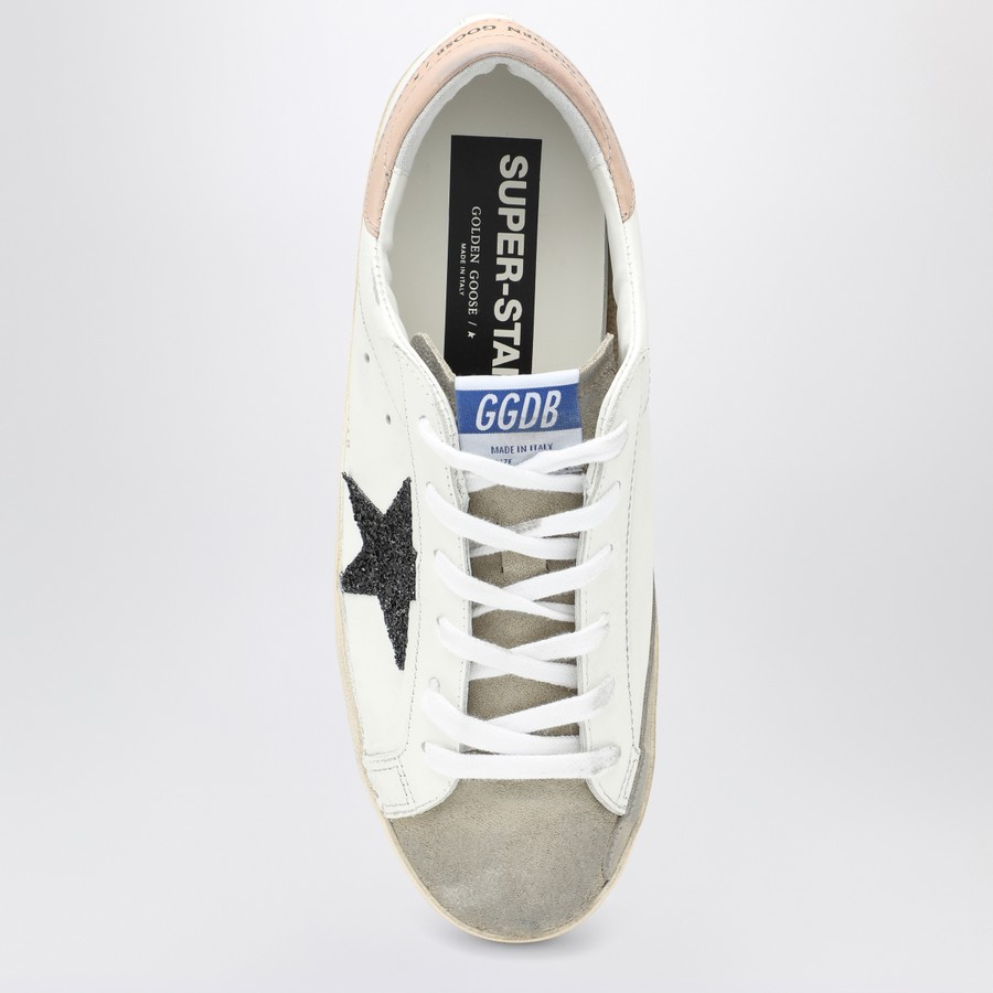 A timeless icon yet one that’s constantly evolving. At Golden, we love taking our classics and reworking them all the time, always from a new angle. On this model, the white leather upper is accentuated by the black glitter star, the dove-gray suede tongue and the old-rose leather heel tab. And white laces add the finishing touch.