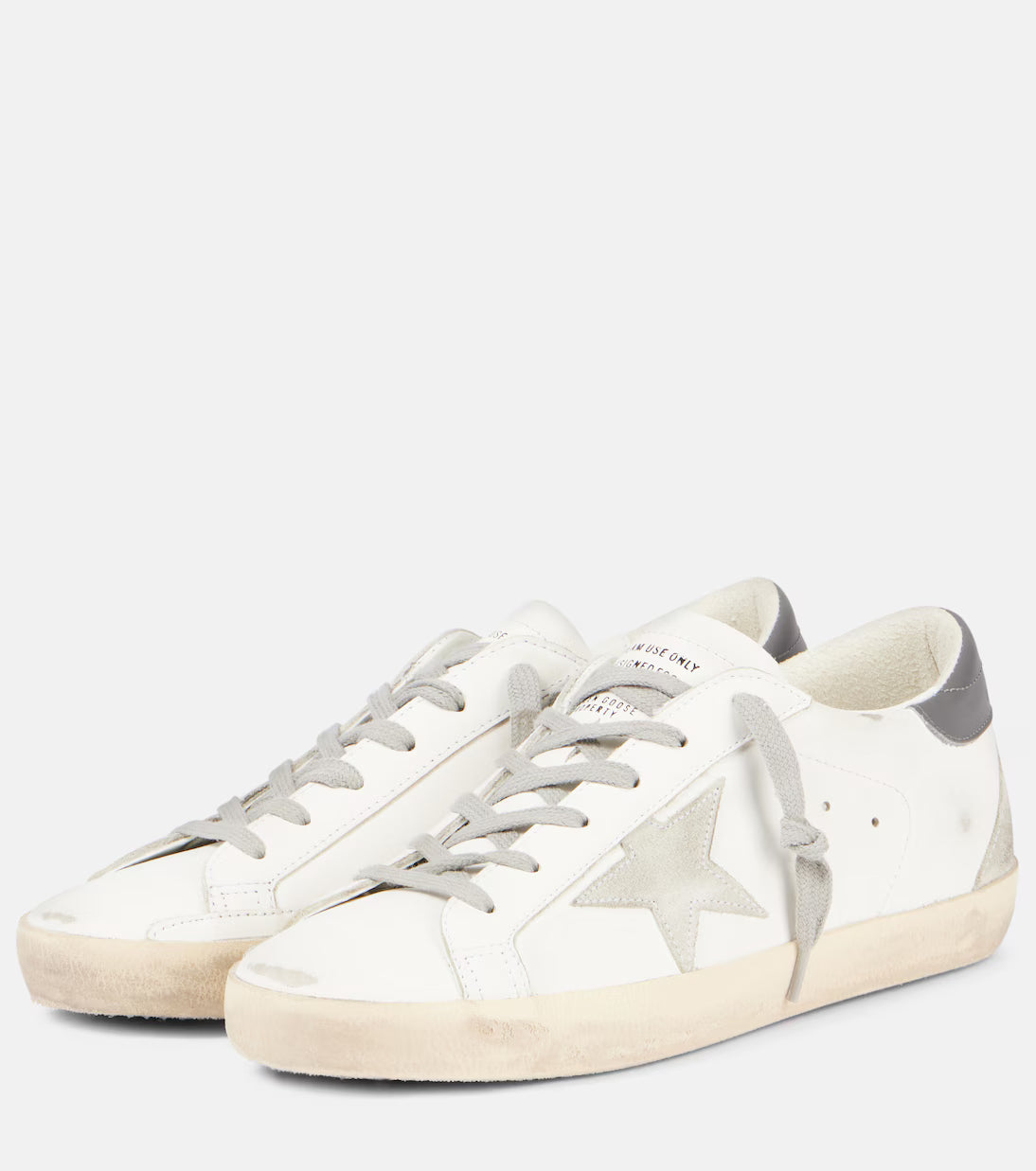 A firm believer that box-fresh kicks are overrated, Golden Goose sneakers are intentionally distressed for a unique worn-in look. These Super-Stars are made from leather and feature the brand-signature stars on the sides.